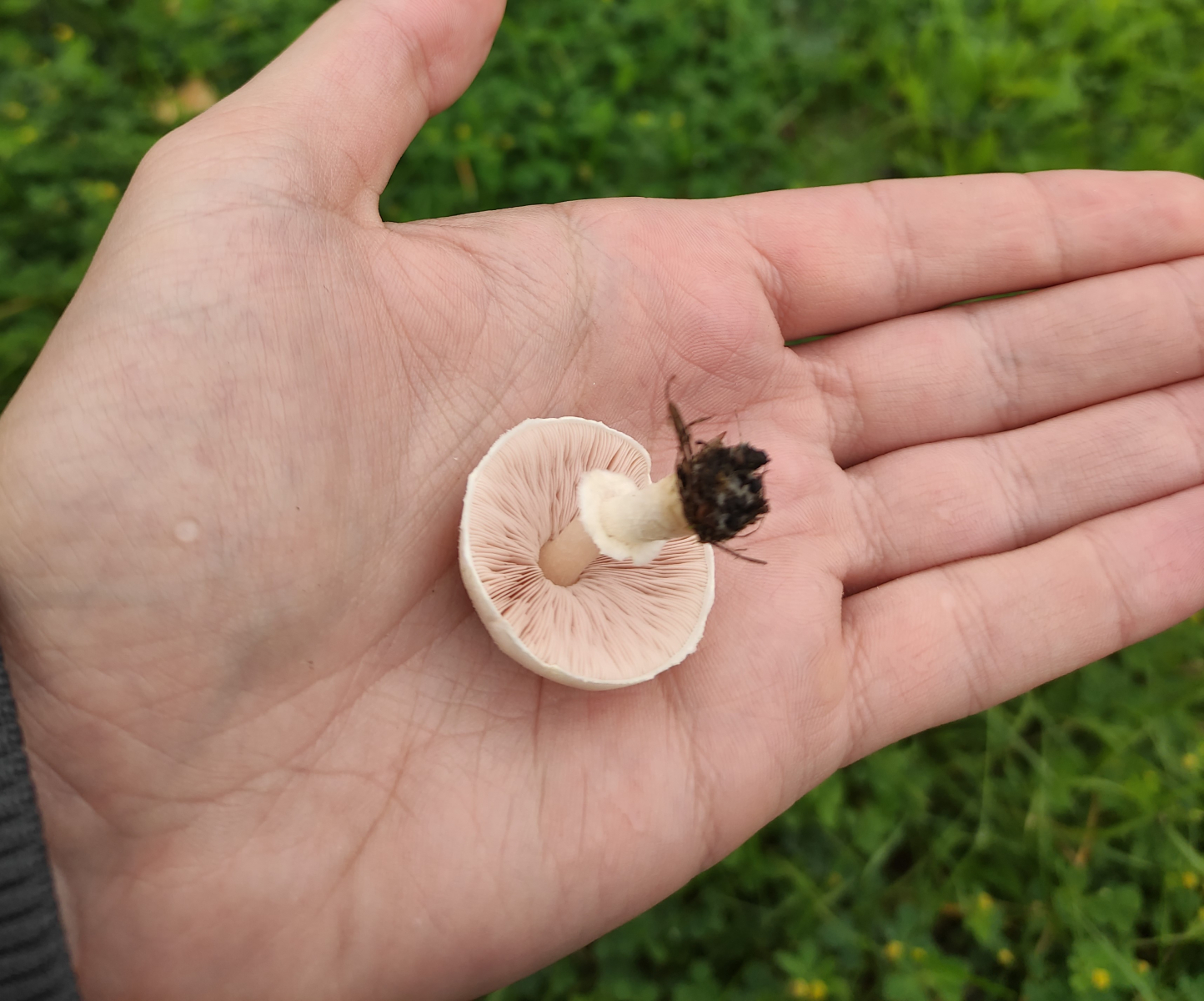 1. Ein gilbender Zwergchampignon mit Anis-Geruch. Die Zwergchampignons kann ich aber nicht mehr bestimmen, seit Parra die bearbeitet hat.