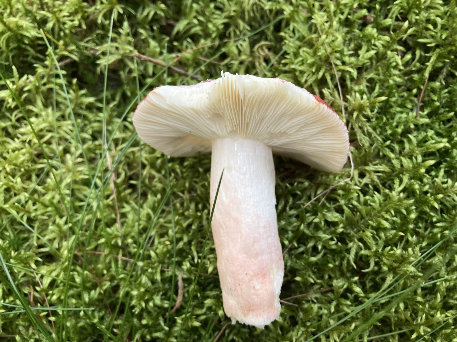 Der wesentlich häufigere Doppelgänger ist der Bluttäubling Russula sanguinaria. Dieser bevorzugt zwar die Kiefer, dennoch standen da auch einige im Umkreis. Also wie bekommt man sie auseinander?