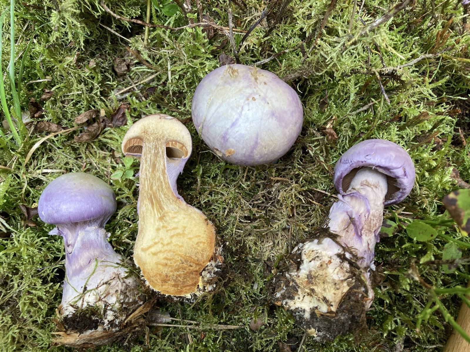 Ein wunderschöner, großer, lila Schleierling. Der Fruchtkörper ist trocken die Hutoberfläche seidig -> Sericeocybe