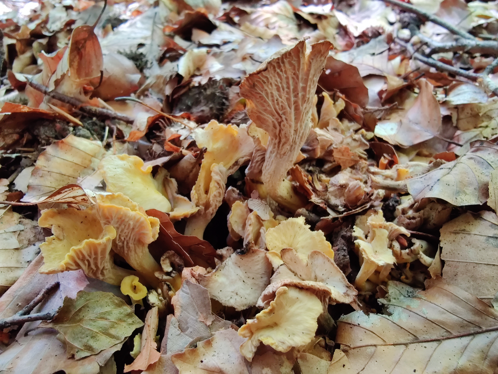 heute war ich auf einer kleinen Tour in meinem Hauswald unterwegs, unter anderem mit dem Ziel etwas für's Pfännchen zu sammeln. Leistlinge erwartete ich in hier bisher nie. Ich konnte in diesem Wald bisher nur einige Trompetenpfifferlinge finden. Pfifferlinge sind hier sehr selten. Dass solche Funde wie heute möglich wären, hätte ich nie geglaubt. Ich bin davon ausgegangen ich müsse weiter weg um solche Arten anzutreffen.
