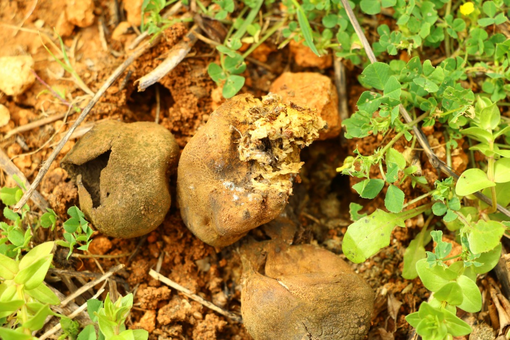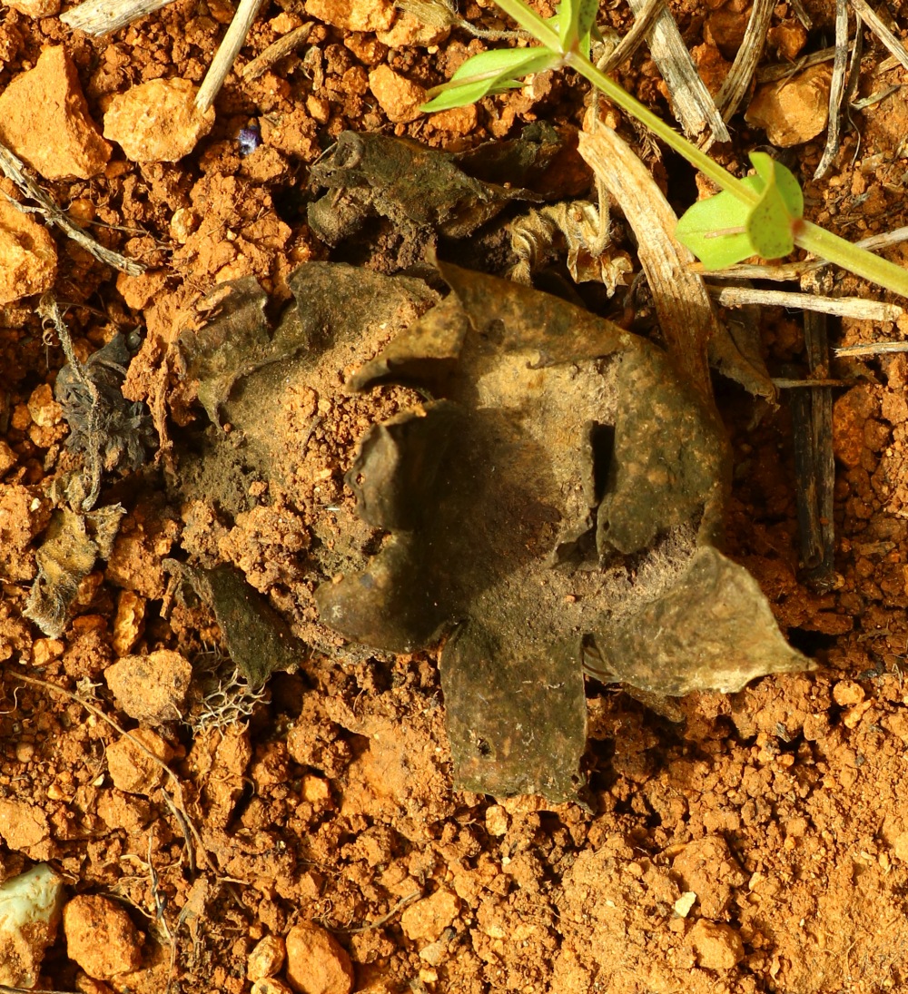 I kindly ask for help on this fungus, a Gasteromycte that I found in Malta in March 2021 on calcareous soil in a field with many organic debris of wild plants. It was a dry year with unexpected low rain in mid-January and February. I was suspecting about a Sarcosphaera sp. (coronaria / eximia?) that did not dehisce welI due to arid conditions. There were two other fruiting bodies that did split wide open. I collected the dry fungus and I can perform some further microscopical examination or chemical tests. Thank you.