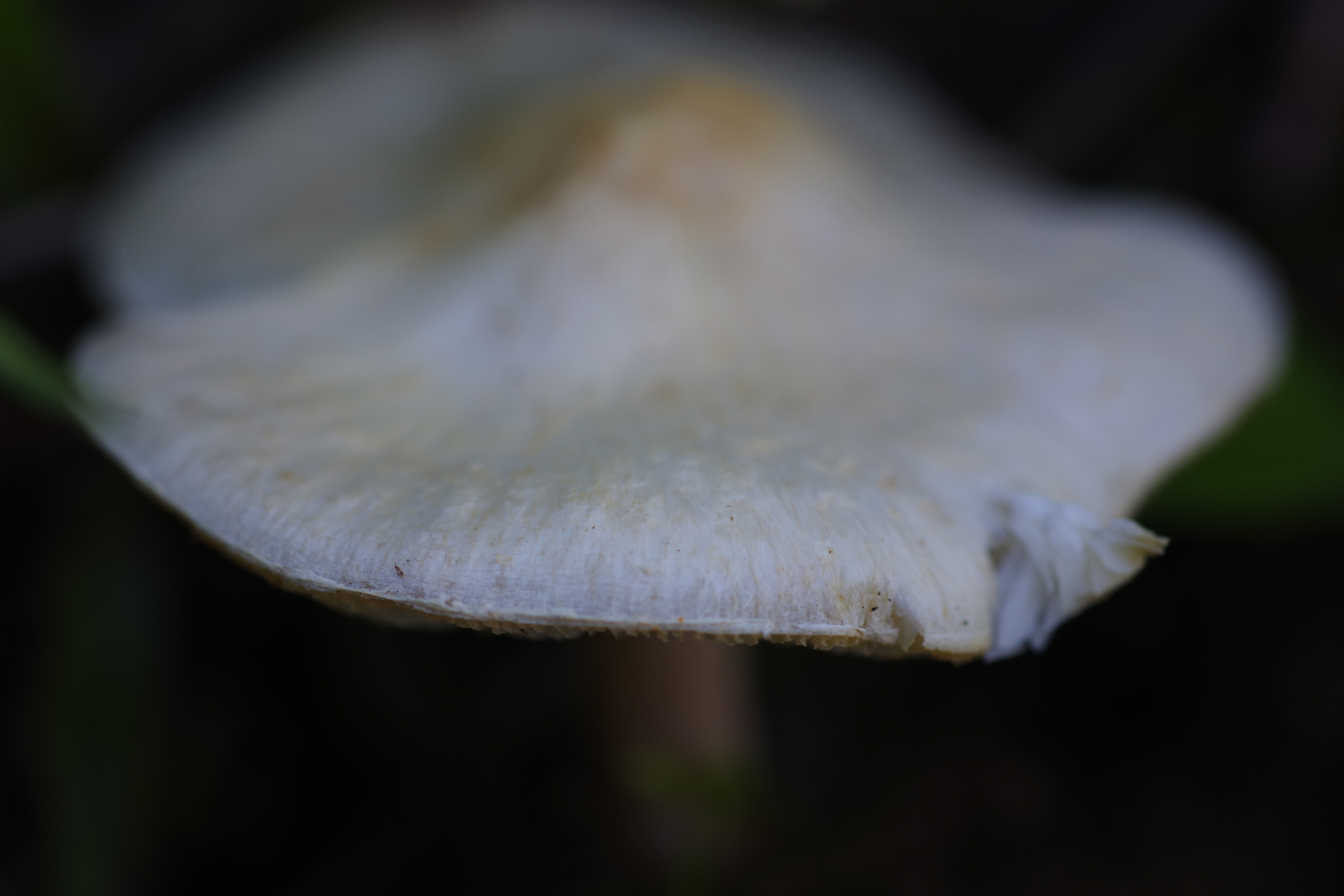 Hutdurchmesser etwa 5 cm. Hut leicht samtig beschuppt, das kommt leider auf dem Foto nicht rüber. Geruch unauffällig, nicht verkostet. Lamellen deutlich frei. Stiel längsfaserig und hohl, etwas verdickt unten, relativ kurz.