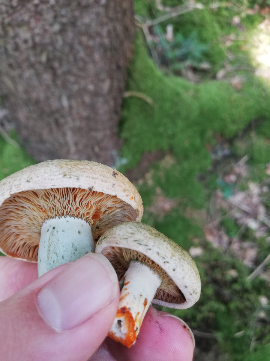 Habe heute diese Reizker gefunden. Angaben die dazugehören aber wahrscheinlich nicht viel bringen: Boden sauer, als Partnerbäume kommen Fichte und Kiefer in Frage, Geschmack mild. Die sahen noch sehr jung aus und waren schon sehr grün, ich kenne den Fichtenreizker nicht schon so früh so grün.