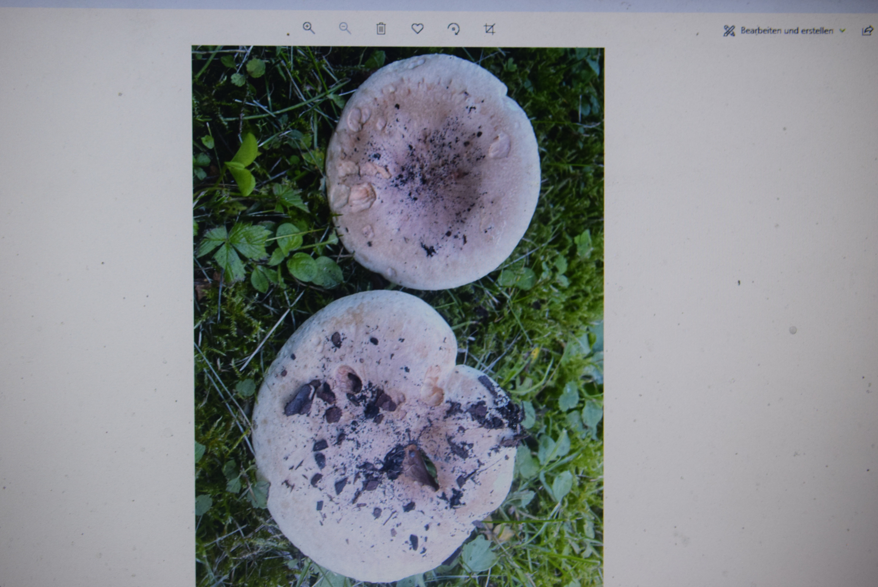 Mögliche Kandidaten wären der Dreifarbige Krempentrichterling (Leucopaxillus compactus) oder doch ein Ritterling zb Tricholoma acerbum der ebenfall dort vorkommt aber immer einen deutlich gerillten Hutrand hat.