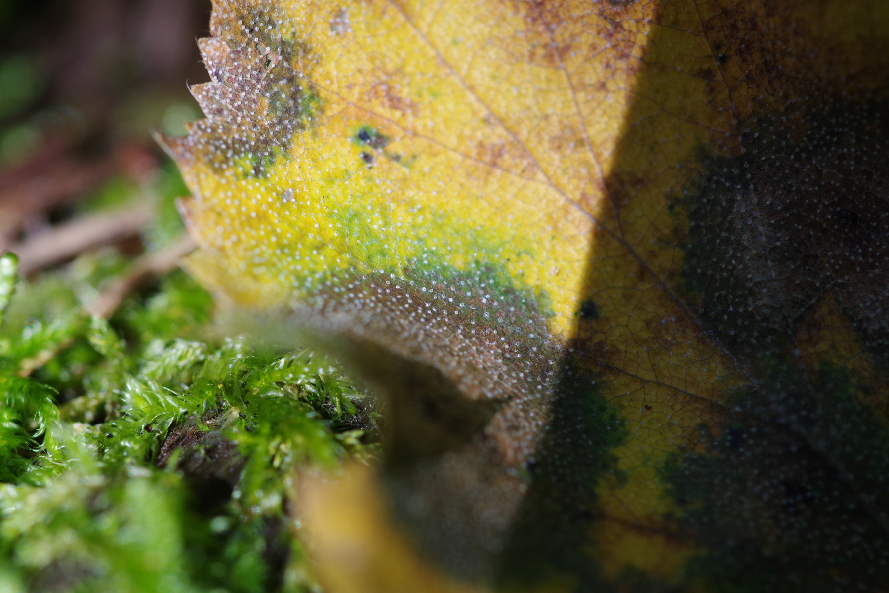 Pilz (?) auf Birkenblatt