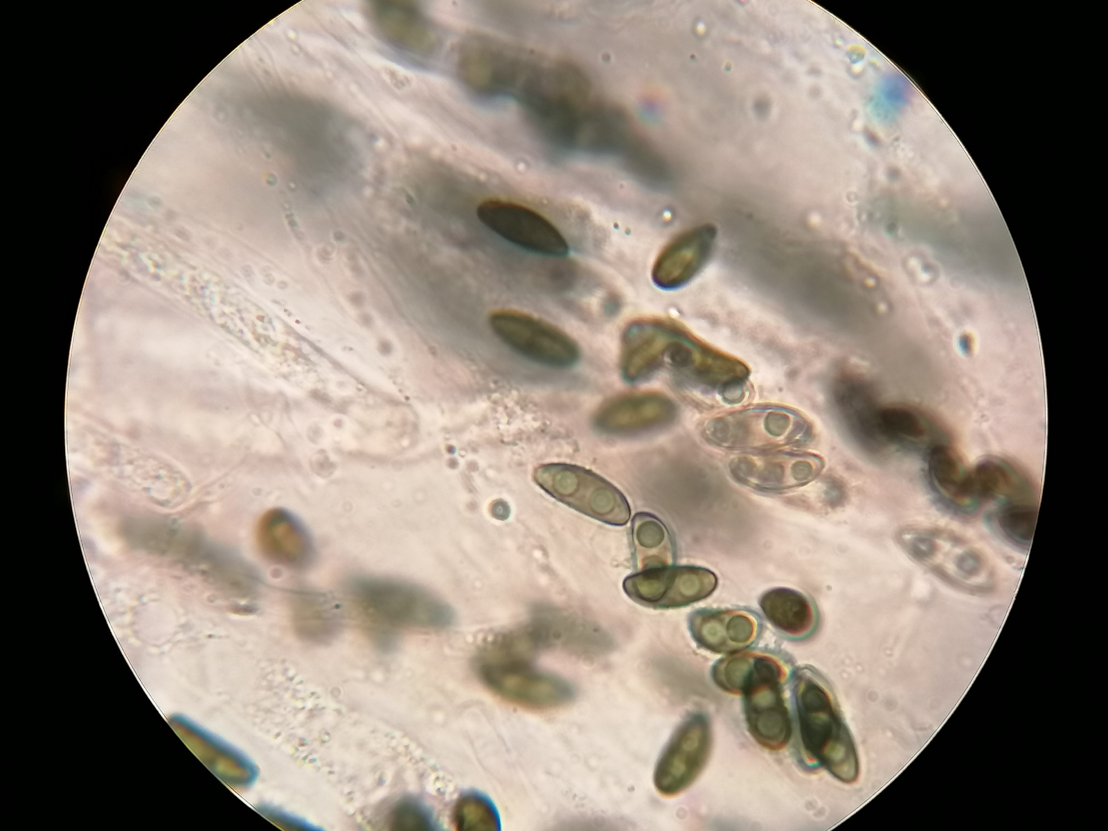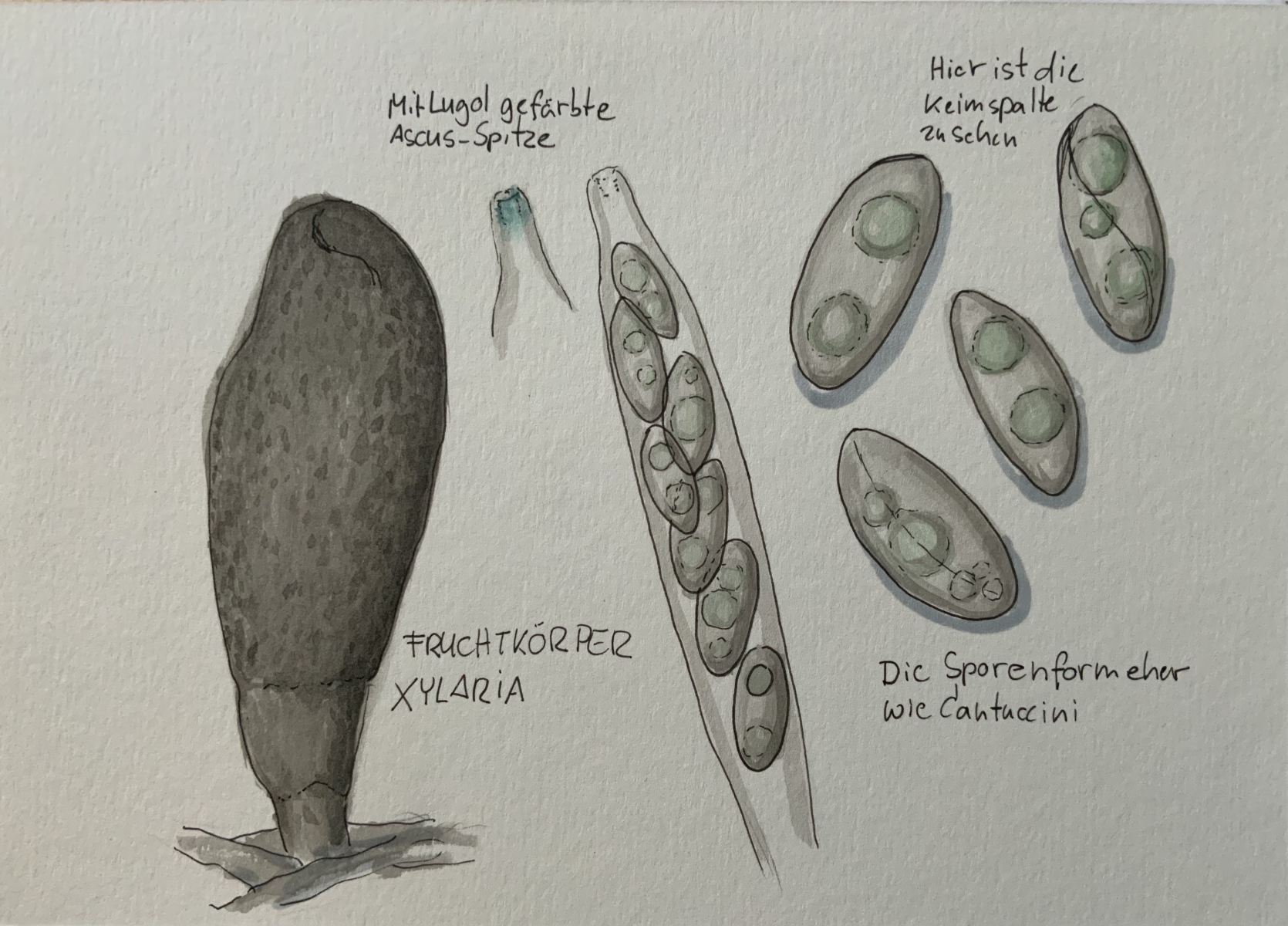 Was mir für X. polymorpha nicht gefällt, ist die Form der Sporen. Ich habe mit „Internetfunden“ und Bildern hier im Forum verglichen. Die sind bei X. p. eigentlich immer länglicher. Die Sporen meines Exemplars sind eher Cantuccini-förmig.