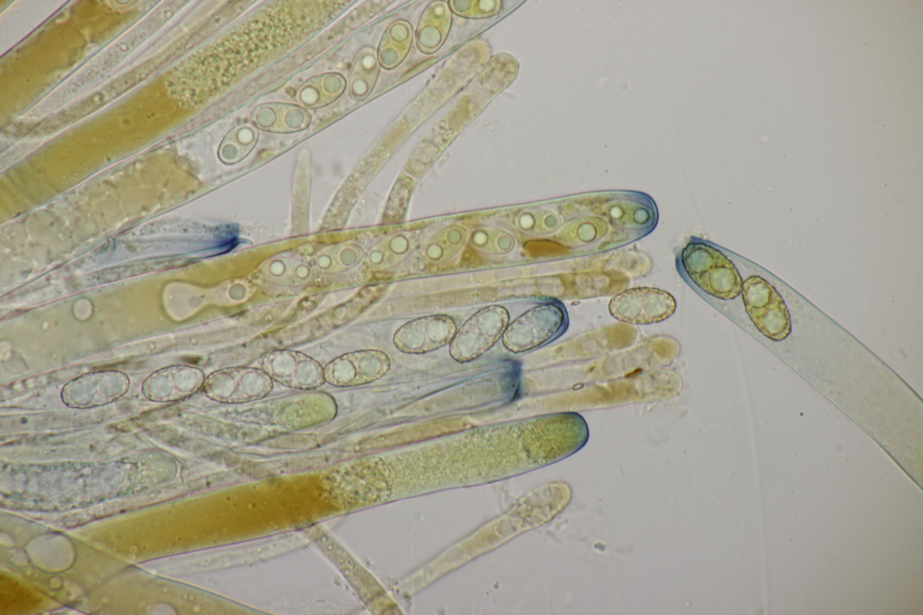bei der Pilzekxursion an der Remscheider Panzertalsperre am letzten Sonntag fanden wir am Wegrand auch einige Becherlinge. Die Fruchtkörper enthielten sehr wenig gilbende Milch, die Sporen sind warzig und messen 14-17 µm x 9-10 µm, Q=1.5-2.0. Mit dem Hohmeyer-Schlüssel lande ich dann bei Peziza michelii. Gehen die Becherlingsexperten da mit?