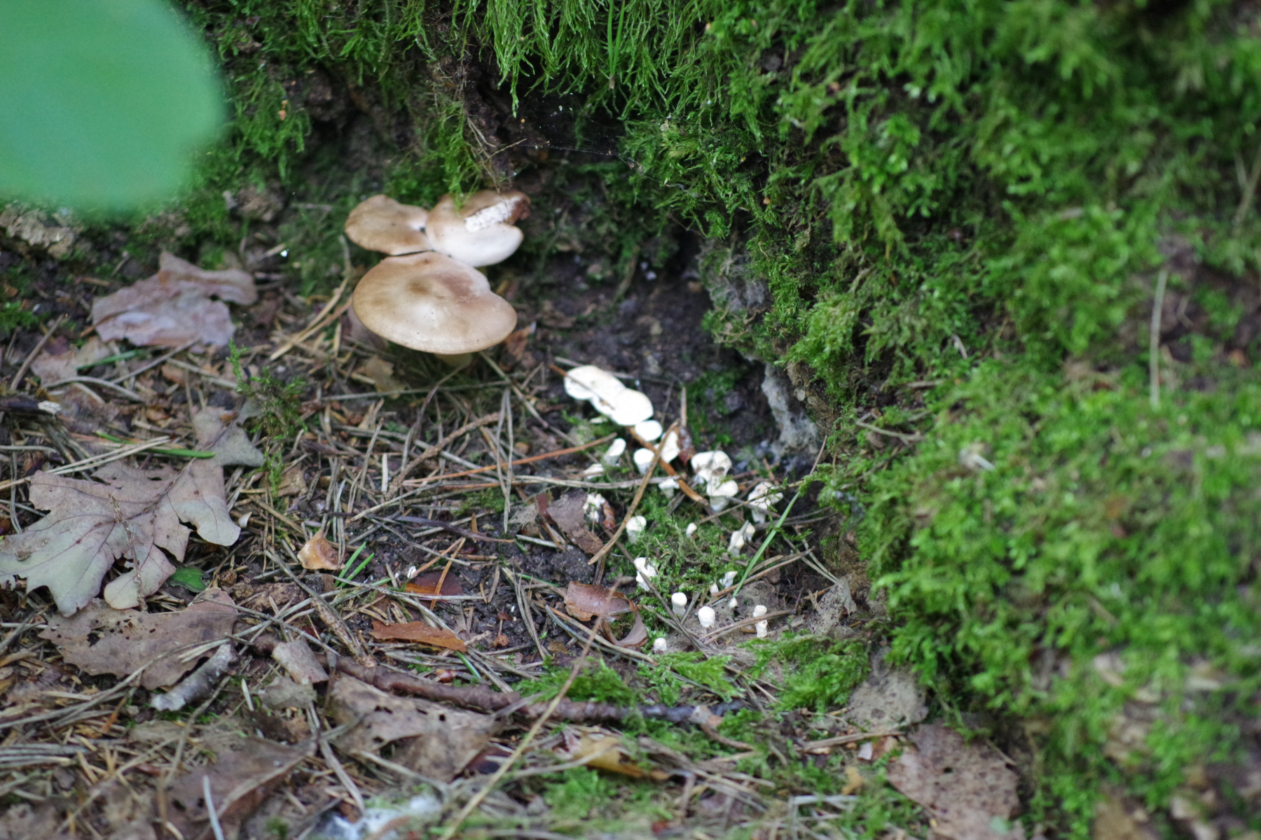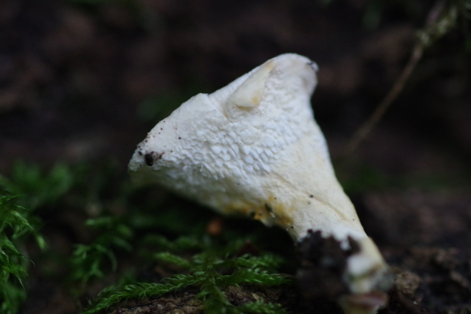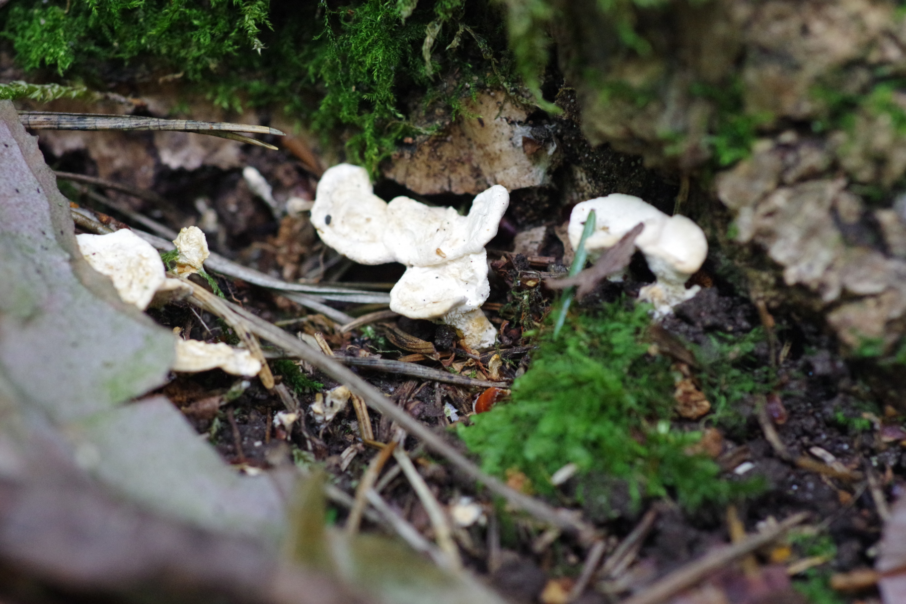 noch ein Pilz von heute, der völlig außerhalb meiner bisherigen Funde liegt. Kleine, 1-2 cm große, weiße umgekehrt trichterförmige Fruchtkörper, teils kreisförmiger Grundriß teils "wolkenförmig". Mit Zähnchen, die an Basidioradulum radula erinnern. Auf Boden am Fuß einer Zitterpappel, wo aber auch Nadeln rumliegen. Es scheint so was, zu meinem Erstaunen, tatsächlich zu geben. Sistotrema confluens sieht zunächst erst mal passend aus - wobei es bei dem Zahnzeug sja sonst immer heißt, dass da ohne Mikroskop nichts geht.