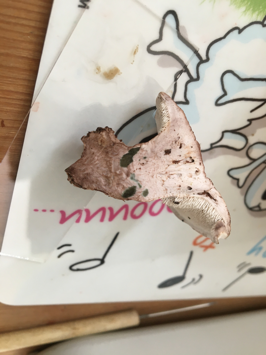danke euch für eure Antworten! Wie versprochen hab ich den KOH- Test gemacht, also ein ganz dünnes Stück der Trama angeschnitten und in KOH gelegt. Das hat sich zwar verfärbt, aber olivgrün hab ich da nicht gesehen. Also hab ich einen neuen Versuch gestartet und bin dabei mit der mit KOH benetzen Pinzette ans Fleisch angekommen. Siehe da, es verfärbte sich gleich olivgrün. Bankera violascens sollte also stimmen.