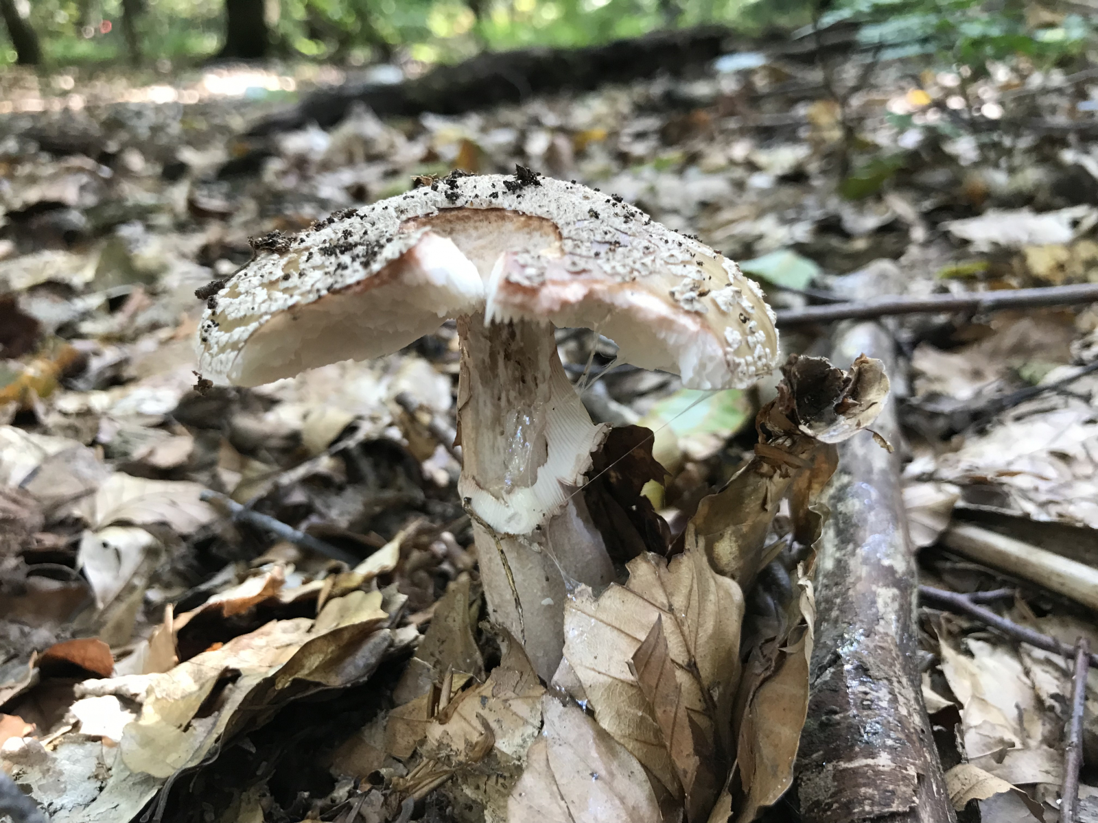 In der Hoffnung, dass es nun ein paar schöne Funde gäbe, ging ich weiter, allerdings kam nicht mehr allzu viel. Ein schon älterer Perlpilz,