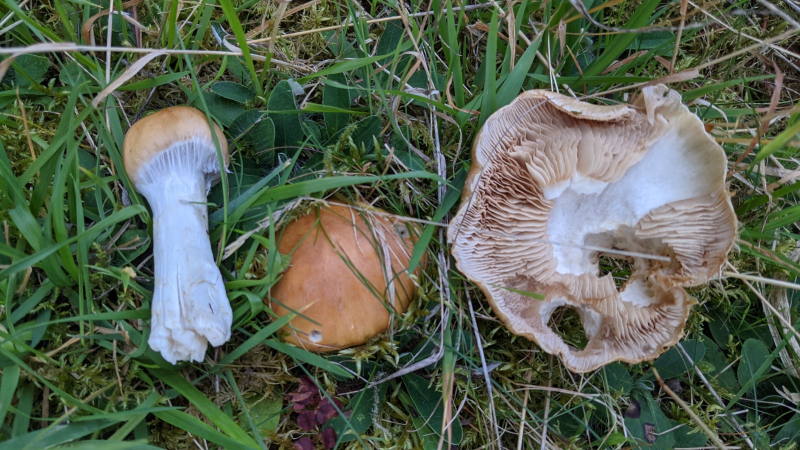 Der kleine sah von oben in der Wiese stehend so toll aus dass ich ihn rausnehmen musste. Leider musste ich dann feststellen dass es wahrscheinlich irgendein Schleierling ist. Bei denen kenne ich mich nicht wirklich aus und da gibt es mir auch viel zu viele giftige Arten. Dennoch würde es mich echt interessieren welche Art dieser wirklich schöne Pilz sein könnte.