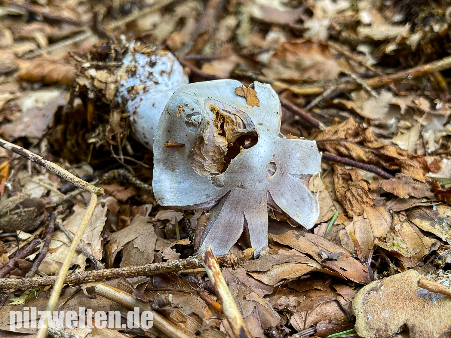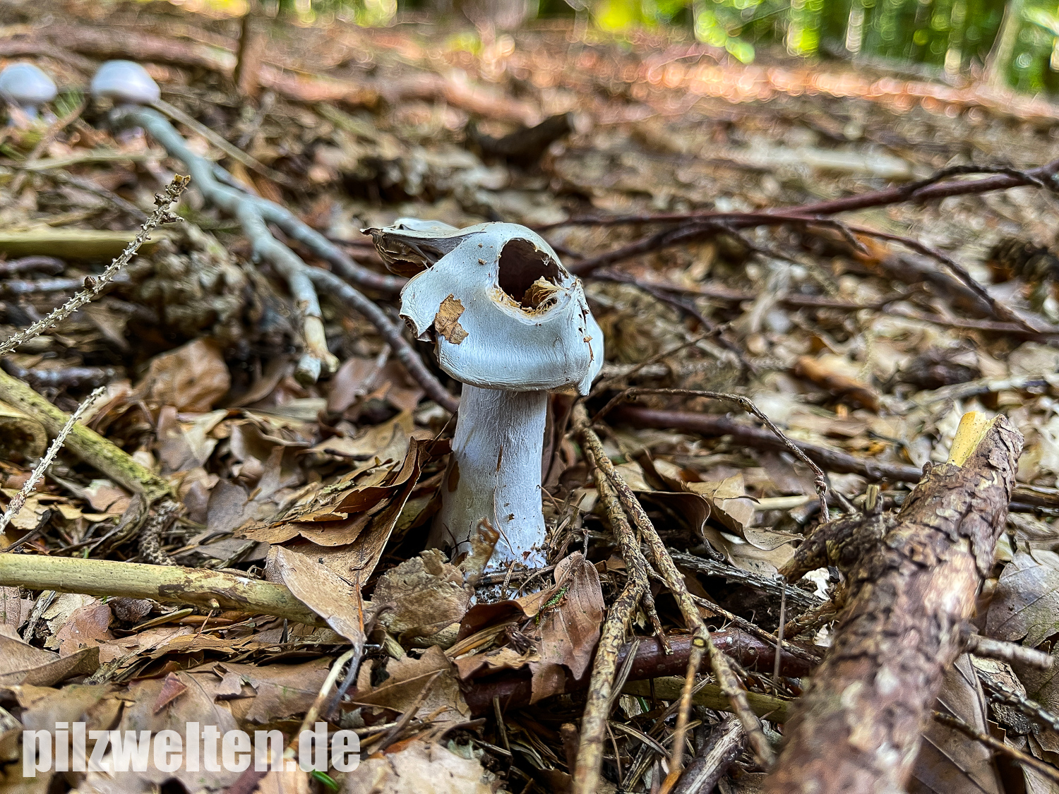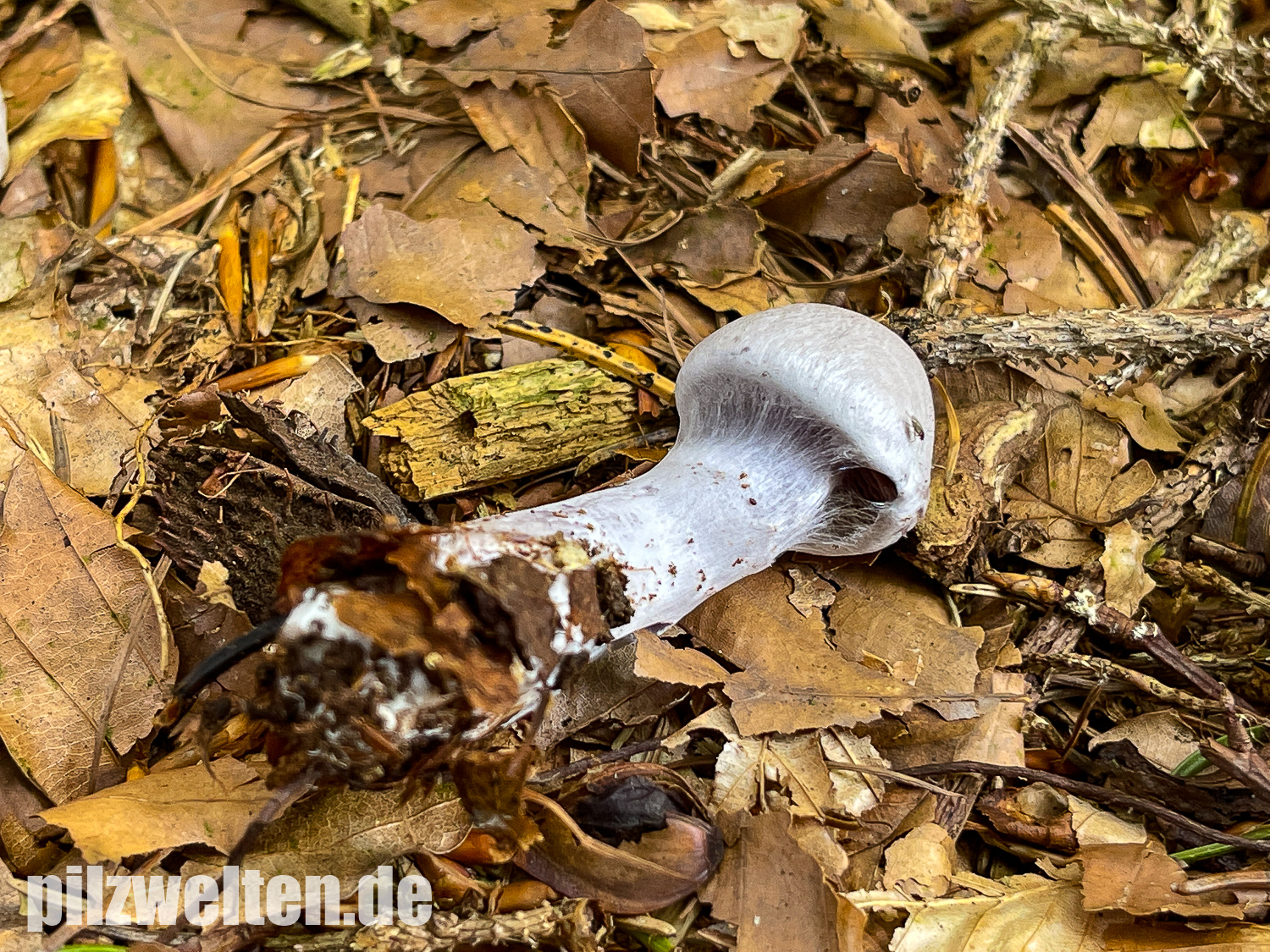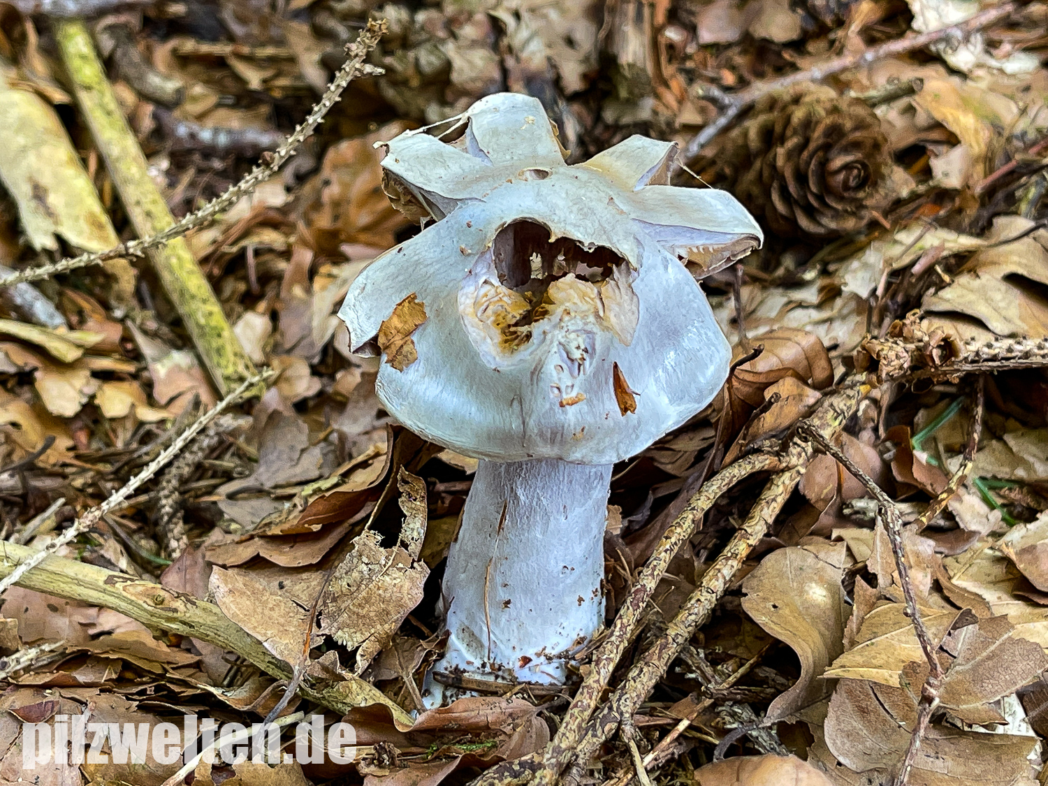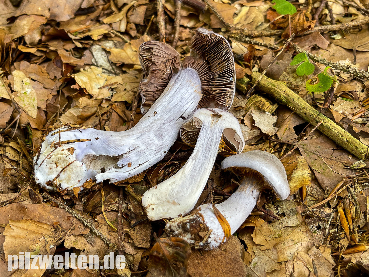 den folgenden Schleierling konnten wir im Buchenmischwald finden. Rein vom Gestank her nicht ganz so unangenehm wie der Bocksdickfuß, aber dennoch hart an der Grenze zu widerlich. Am ehesten erinnerte uns der Geruch an alten Camembert, weshalb wir den geruchstechnisch schon irgendwo ins Eck um Cortinarius camphoratus & Cortinarius traganus stecken würden. Allerdings ist das Fleisch nicht safrangelblich, was Cortinarius traganus ausschließt und ansonsten passt die Art für uns u. a. vom Habitat, farblich und vom Habitus (unser Fund heute war deutlich zierlicher als die Bocksdicksfußfunde die wir bisher hatten) auch überhaupt nicht zu Cortinarius camphoratus. Eine Art die besser passt haben wir aber bisher auch nicht gefunden, weshalb wir hier mal lose nachfragen wollten, ob sonst vielleicht noch jemand eine Idee dazu hat:
