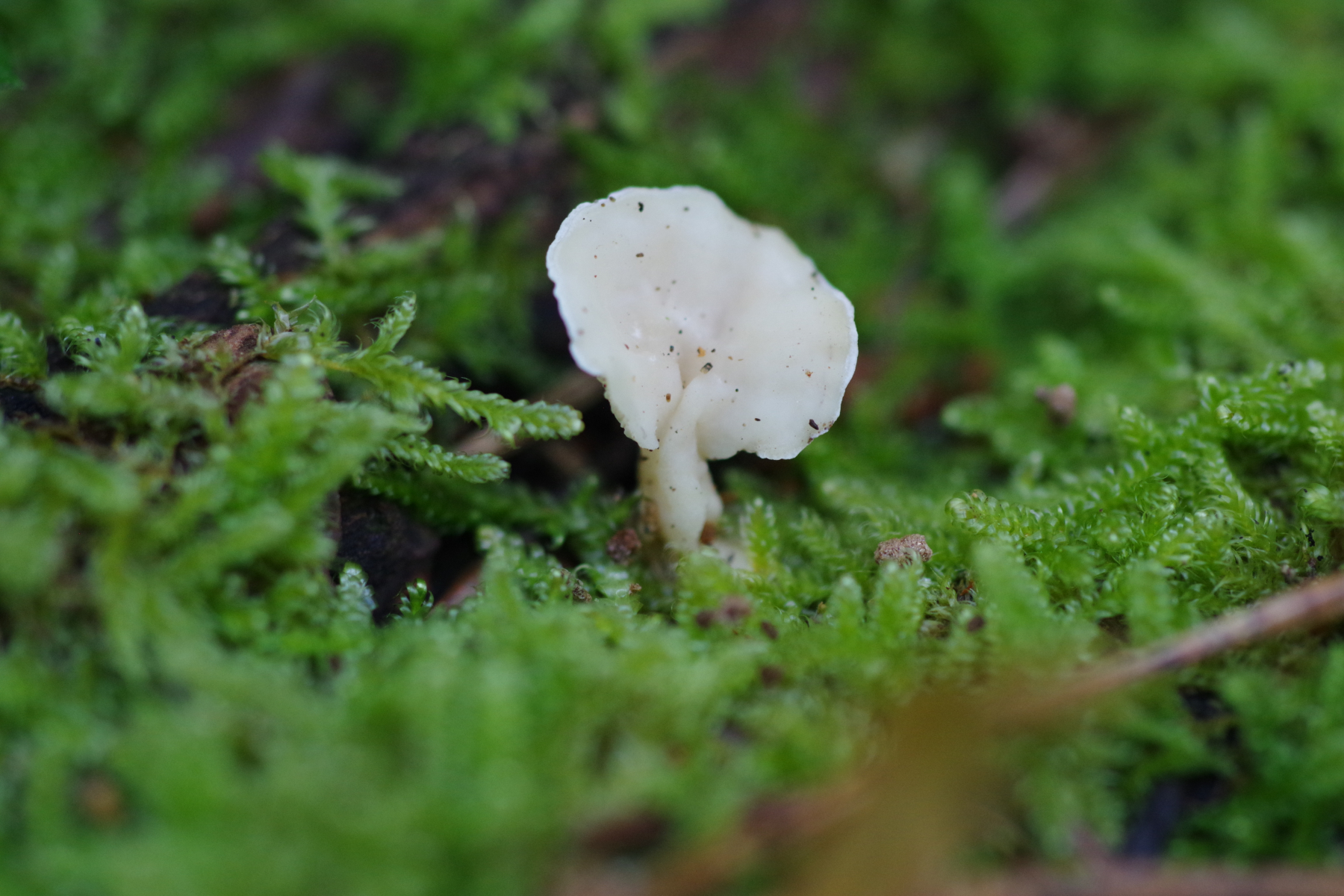 Zu Pilz 2 kam mir heute ein Gedanke, als ich Trichaptum abietinum oben auf einem liegenden Stamm hab wachsen sehen. Das sah ähnlich aus, zwar ohne Stiel aber auch nur ziemlich schmal angewachsen. Wegen der weißen Poren käme dann Trichaptum biforme in Frage. Und man kann das Rätsel als gelöst ansehen.