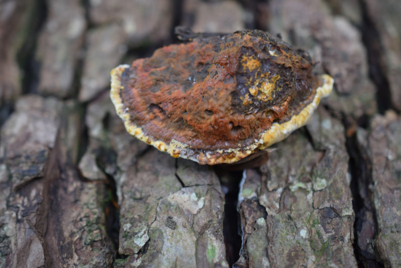 Von Inonotus radiata habe ich mir heute Stellen angeschaut, wo ich den im Winter hatte, zumeist an Haselnuss. Teilweise schon in voller Entwicklung. Nur sieht der ganz anders aus. Könnte höchsten sein, dass der an Erle, zumal an liegendem Totholz dann anders aussieht. Oder die Art wird demnächst durch Sequenzierung in drölfzig aufgespalten :D