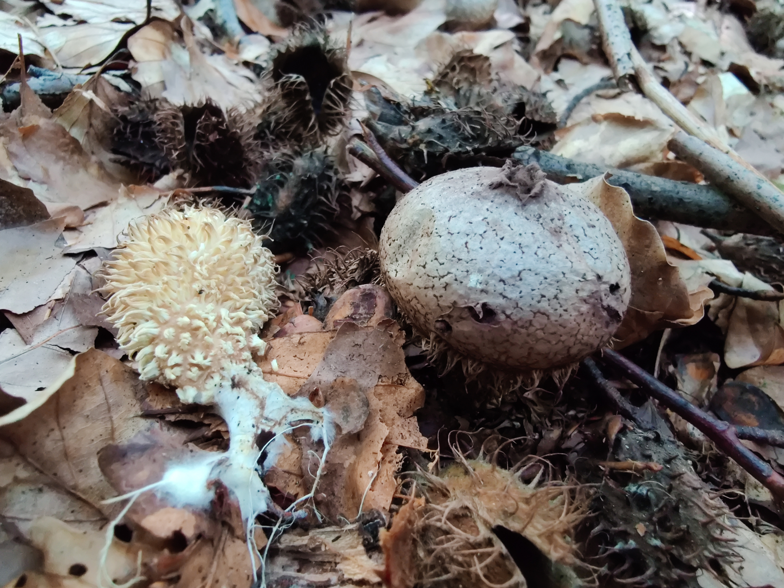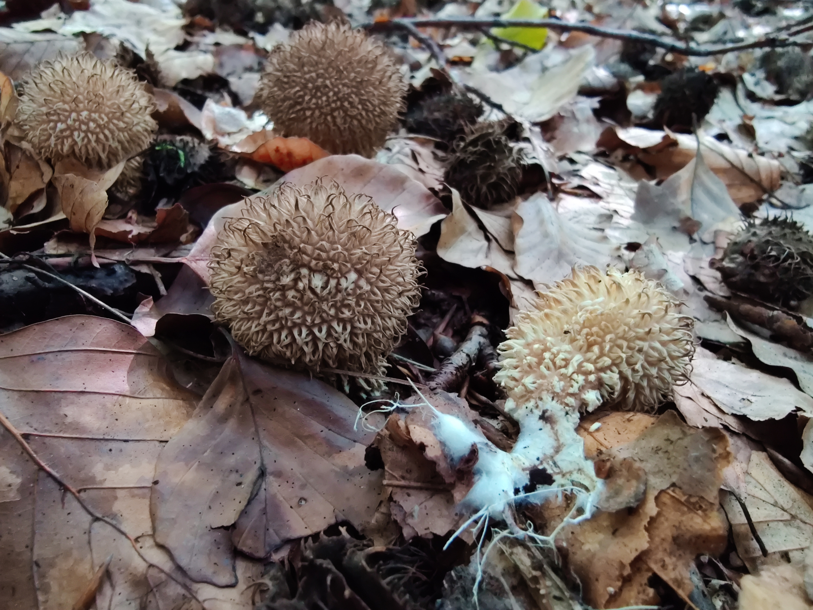 3. Häufig zu finden war diese hier, auch wenn er sich zwischen den Bucheckern gut tarnte. Das sollte der Igel-Stäubling (Lycoperdon echinatum) sein.
