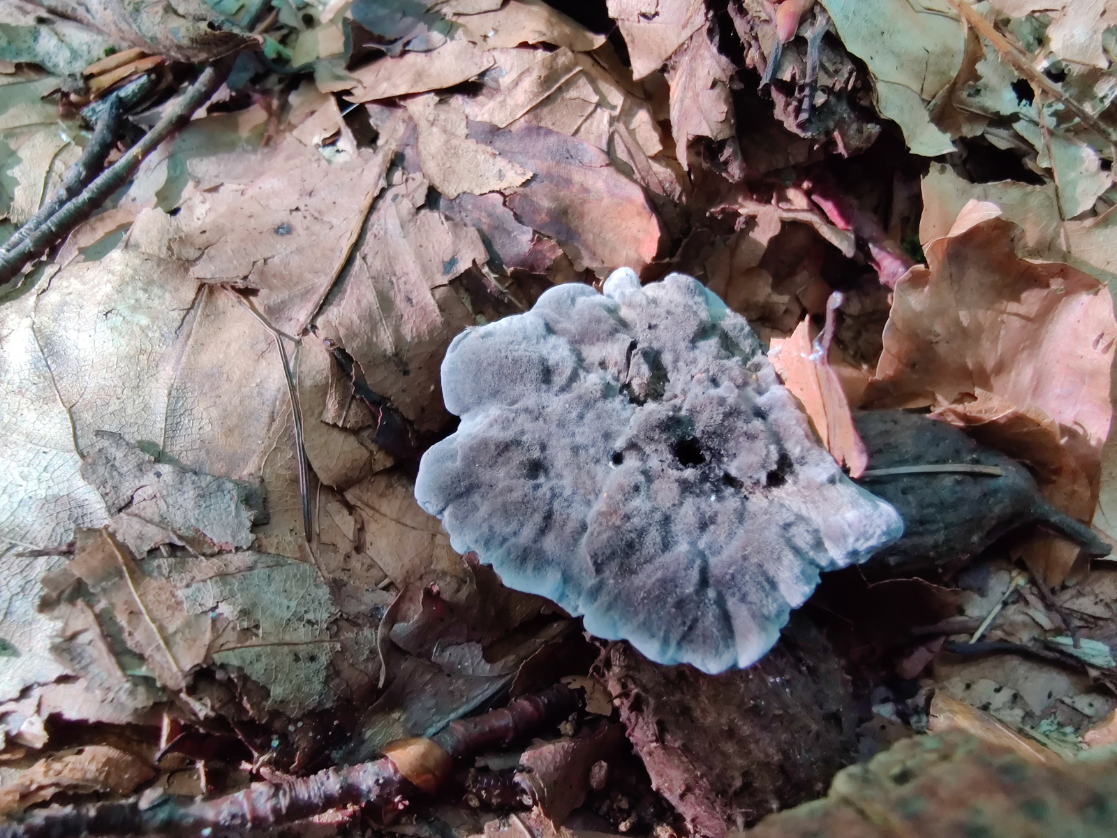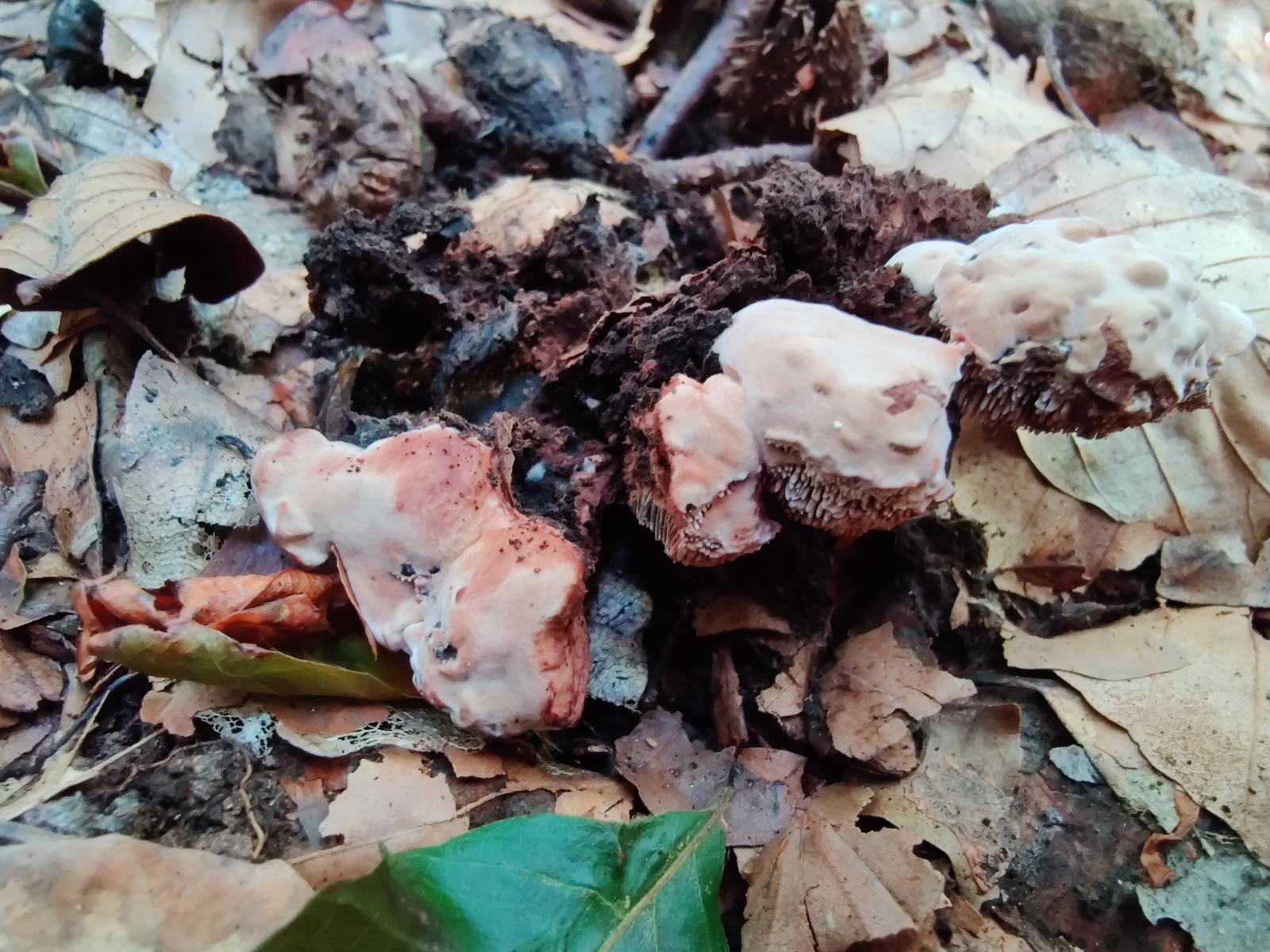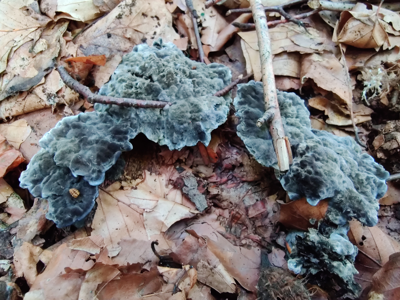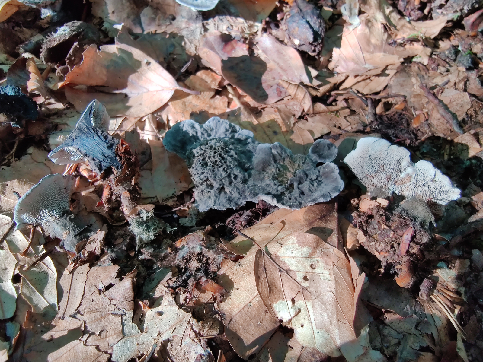 5. Interessant könnte dieser hier sein, gefunden bei einer alten Rotbuche. Es waren zahlreiche kleine, junge Fruchtkörper mit ~kreisförmigem Habitus zu finden, aber auch wenige größere, stark verwachsene. Der Geruch war sehr stark würzig. Der im Internet beschriebene Geruch nach Maggi kommt finde ich ganz gut hin.