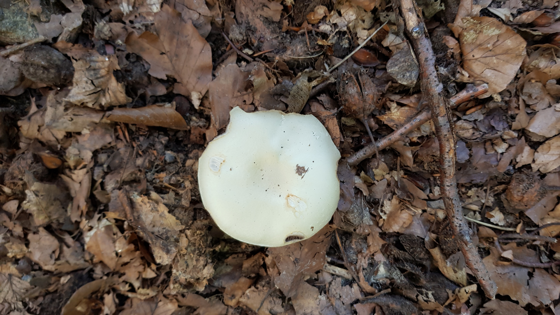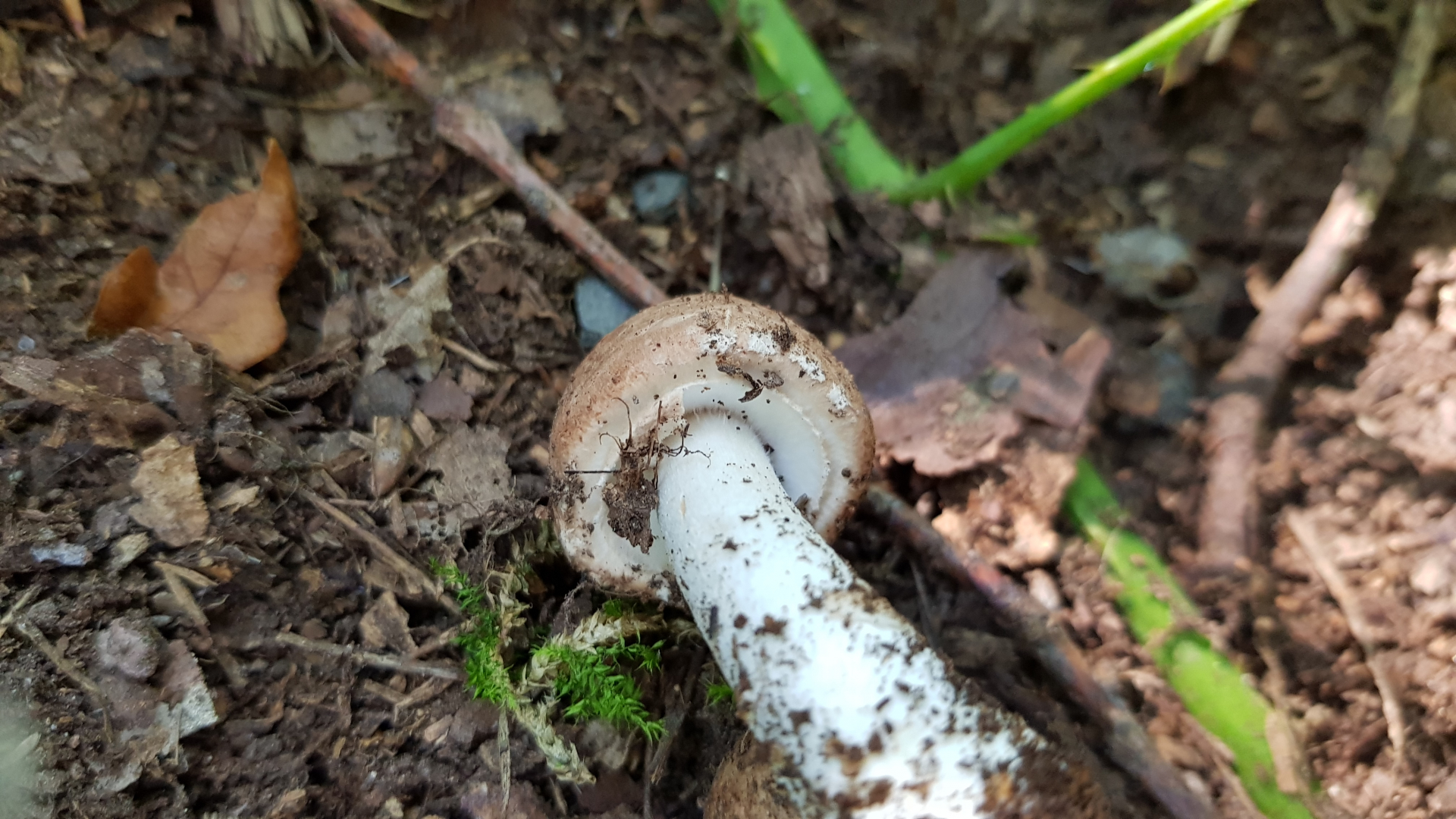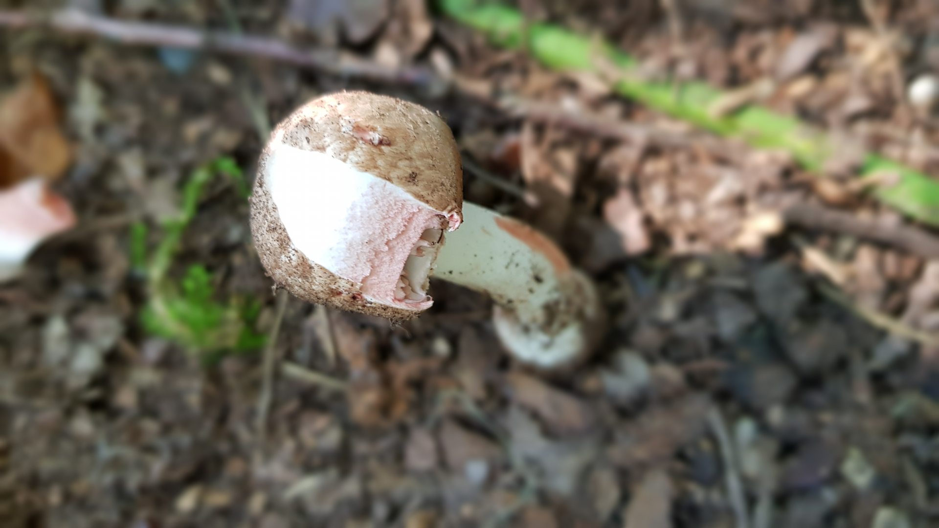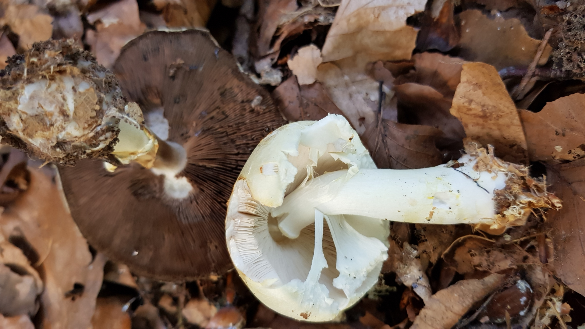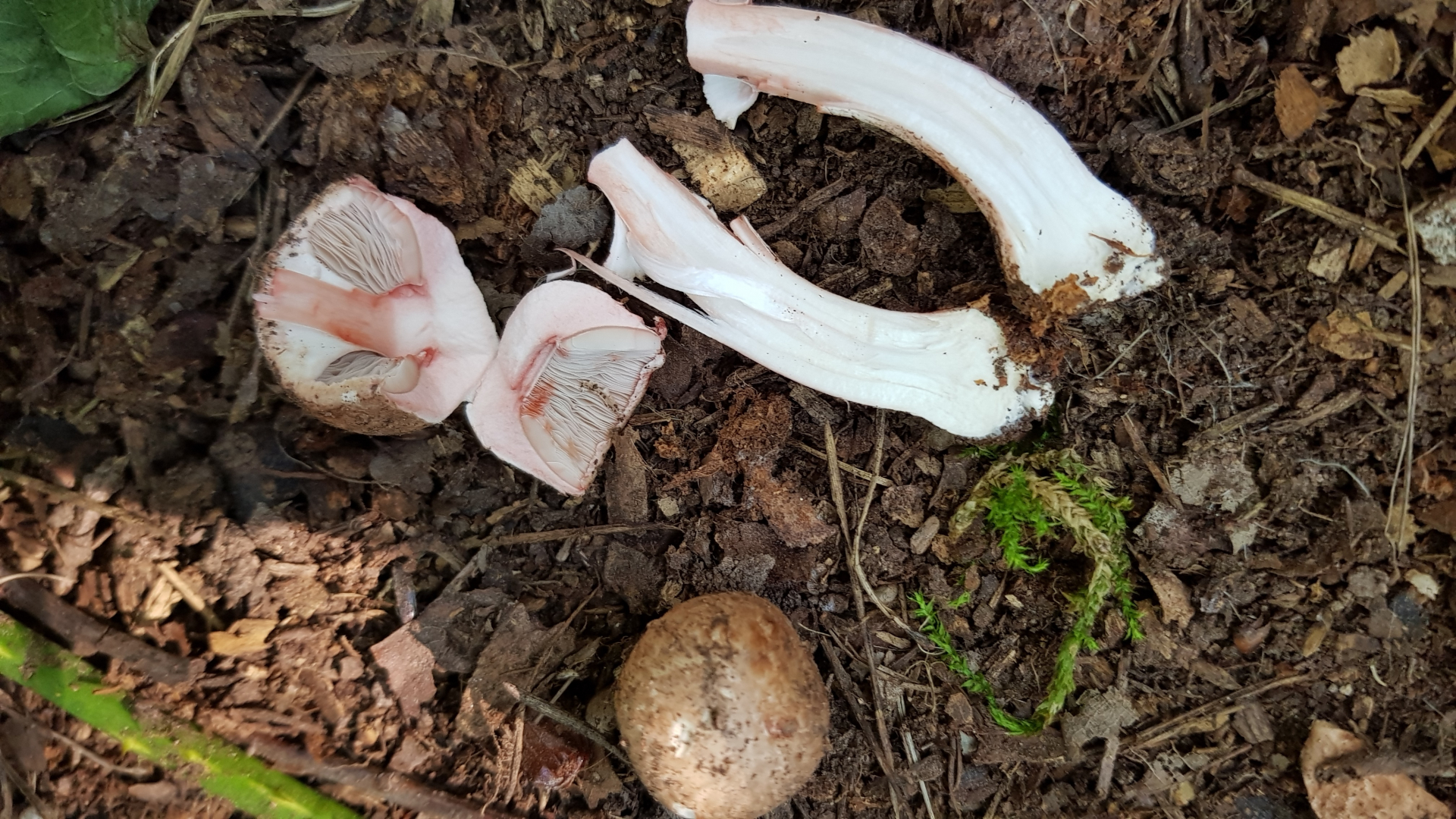 Da die weißen Lamellen und der weiße Stiel bei Verletzung röten, die Basis rübenförmig ist, die Huthaut bis zur Mitte abziehbar ist, wage ich zu sagen: Es ist vielleicht ein Perlpilz.