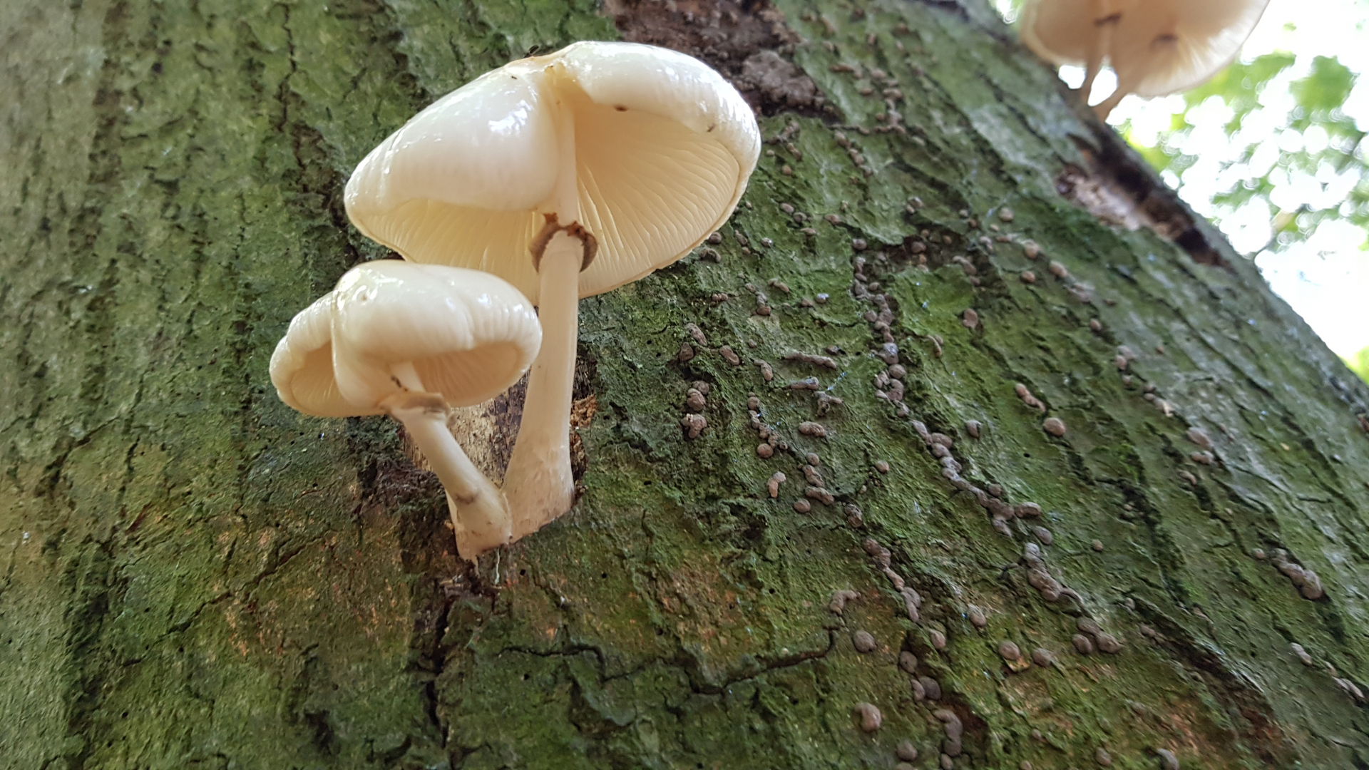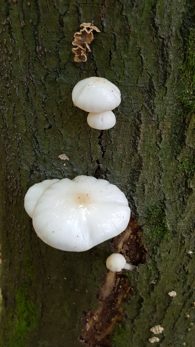 4.) Die Fruchtkörper stehen büschelig. Hut ist 2–10 cm breit, anfangs gewölbt, später flacher ausgebreitet, weißlich mit leicht ockerfarbenen Anflug in der Mitte, etwas durchscheinend, schleimig. Die Lamellen sind breit und entferntstehend. Der Stiel ist oberhalb des gerieften Ringes weißstreifig, unterhalb etwas schuppig.