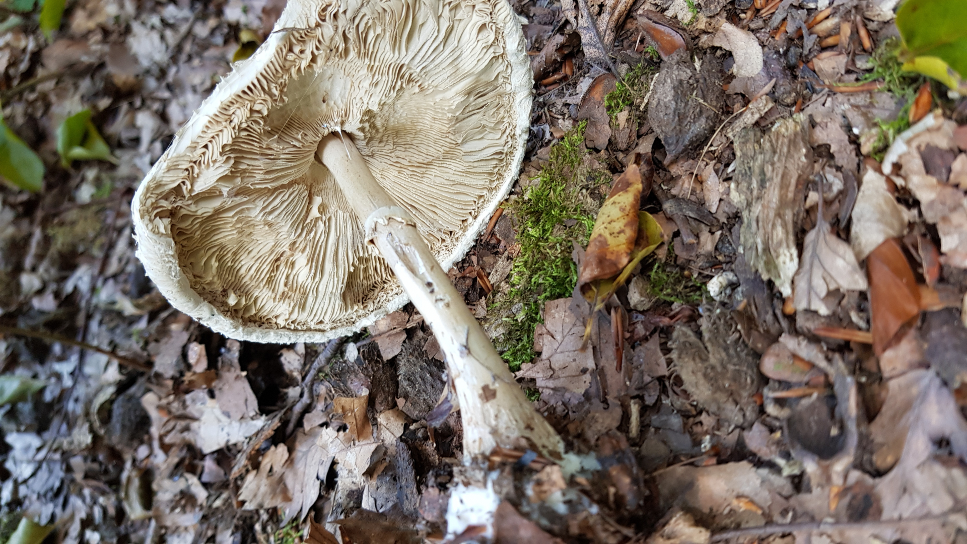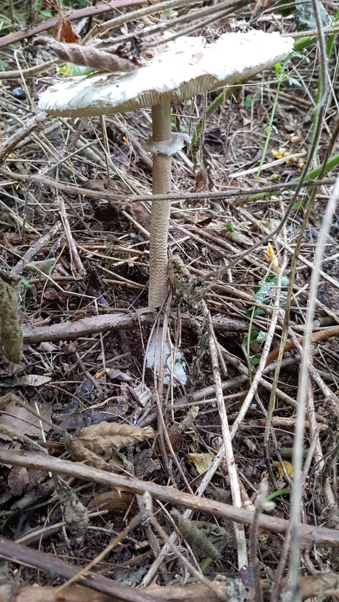 Dass sich der Hut wie Gummi anfühlt, mag wohl daran liegen, dass er schon etwas angetrocknet ist. Die Lamellen sind auch ganz wellig. Ich könnte mit Macrolepiota excoriata in alt vorstellen.