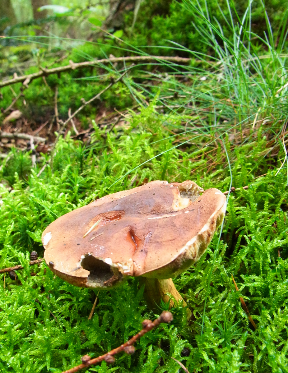 Die Röhren verfärben sich blau nach Druck, der Rest des Pilzes blaut nicht.