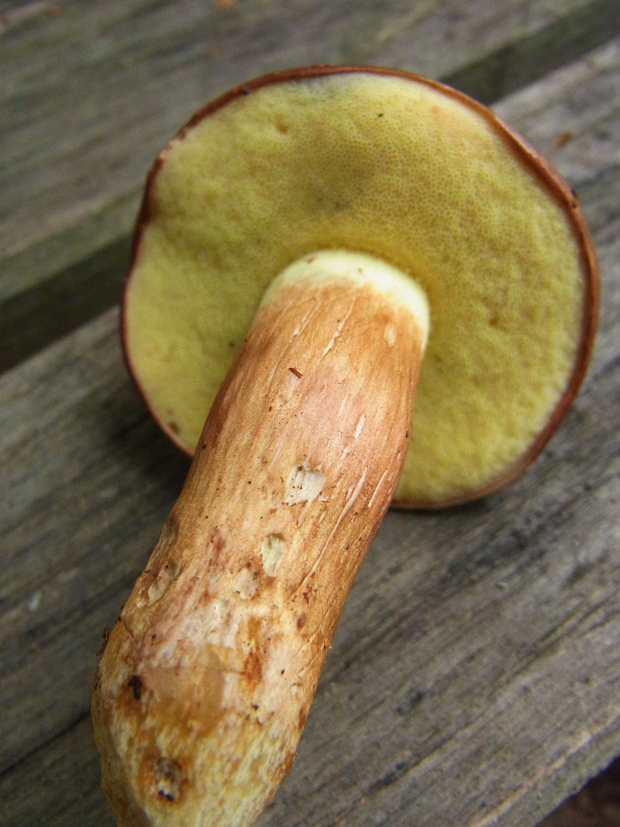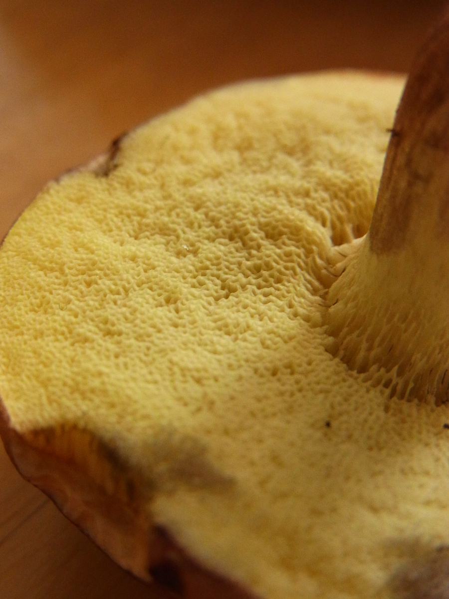 Die Röhren sind gelblich. In der Beschreibung von Xerocomus subtomentosus