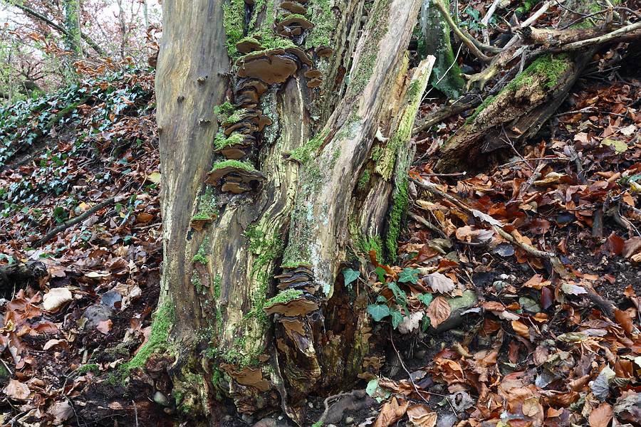 Ich denke, dass man mit einem Teil der folgenden Bilder die "Weide" guten Gewissens als Substrat benennen kann: Die Borke und die Art des Wachstums (mehrere Stämme aus einem Wurzelbereich) erscheinen mir typisch, eine Eiche o. ä. scheidet somit sicherlich aus!