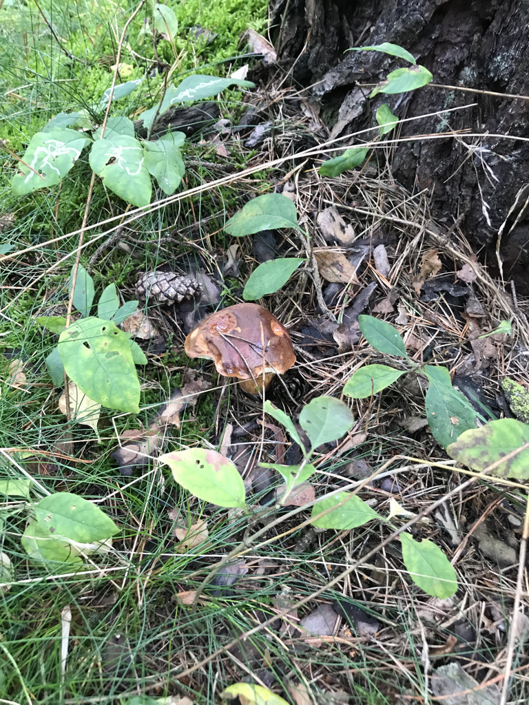 | Kommentar | Verwundert war ich über die extrem klebrige Huthaut, doch ein Schmierröhrling wollte nicht passen. Unsicherheiten bestehen in Richtung Maronenröhrling, jedoch blaut mir das Fleisch nicht stark genug. Der Stiel wirkt zudem zu hell. |