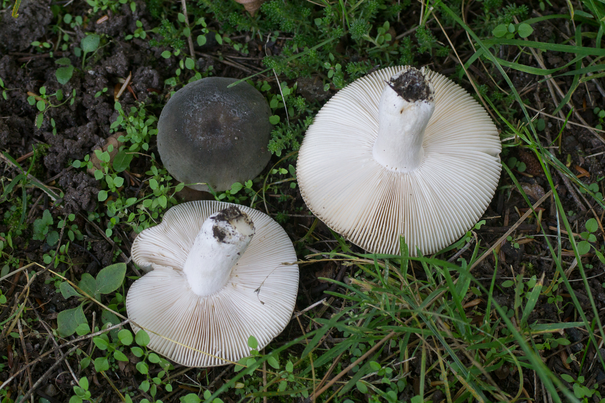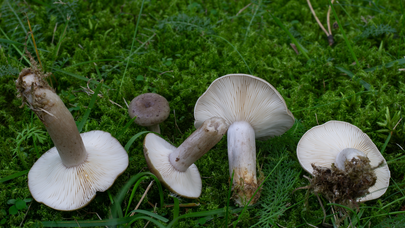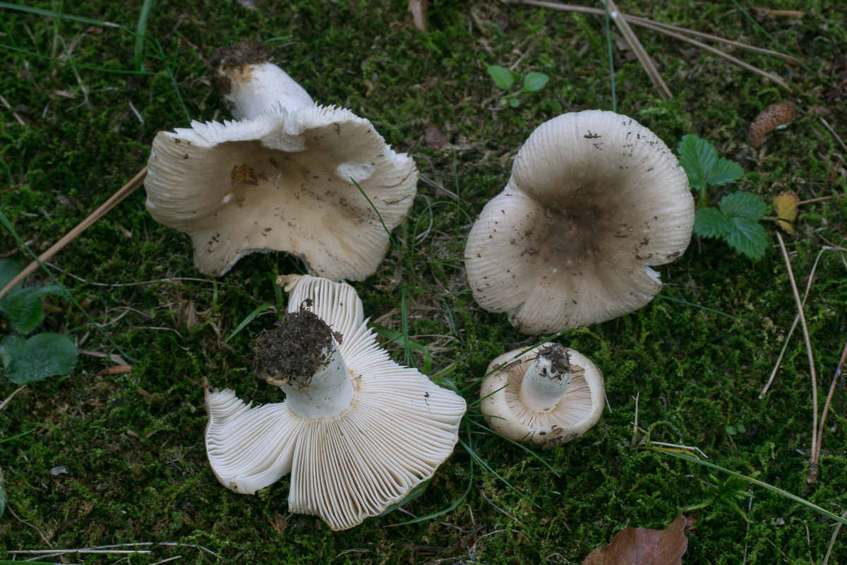 2. Das hier ist denke ich Russula cf. parazurea - Blaugrüner Reiftäubling, da junge Exemplare bereift sind. Wobei ich nicht genau weiß ob andere Griseinae das auch können? Baumpartner war nicht zuzuordnen, zu viele verschiedene Bäume drum rum. Ich vermute aber die große Eiche war es.