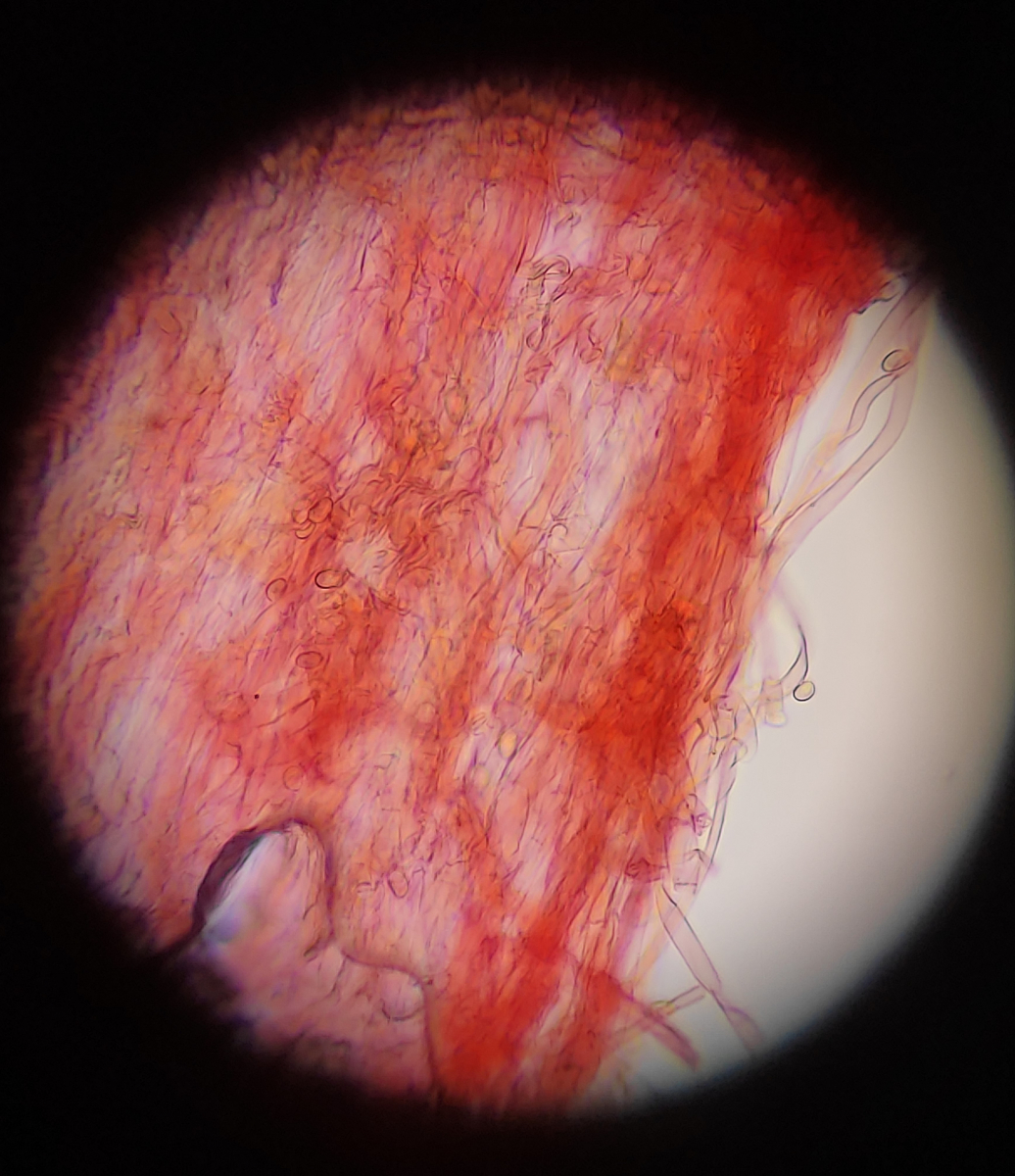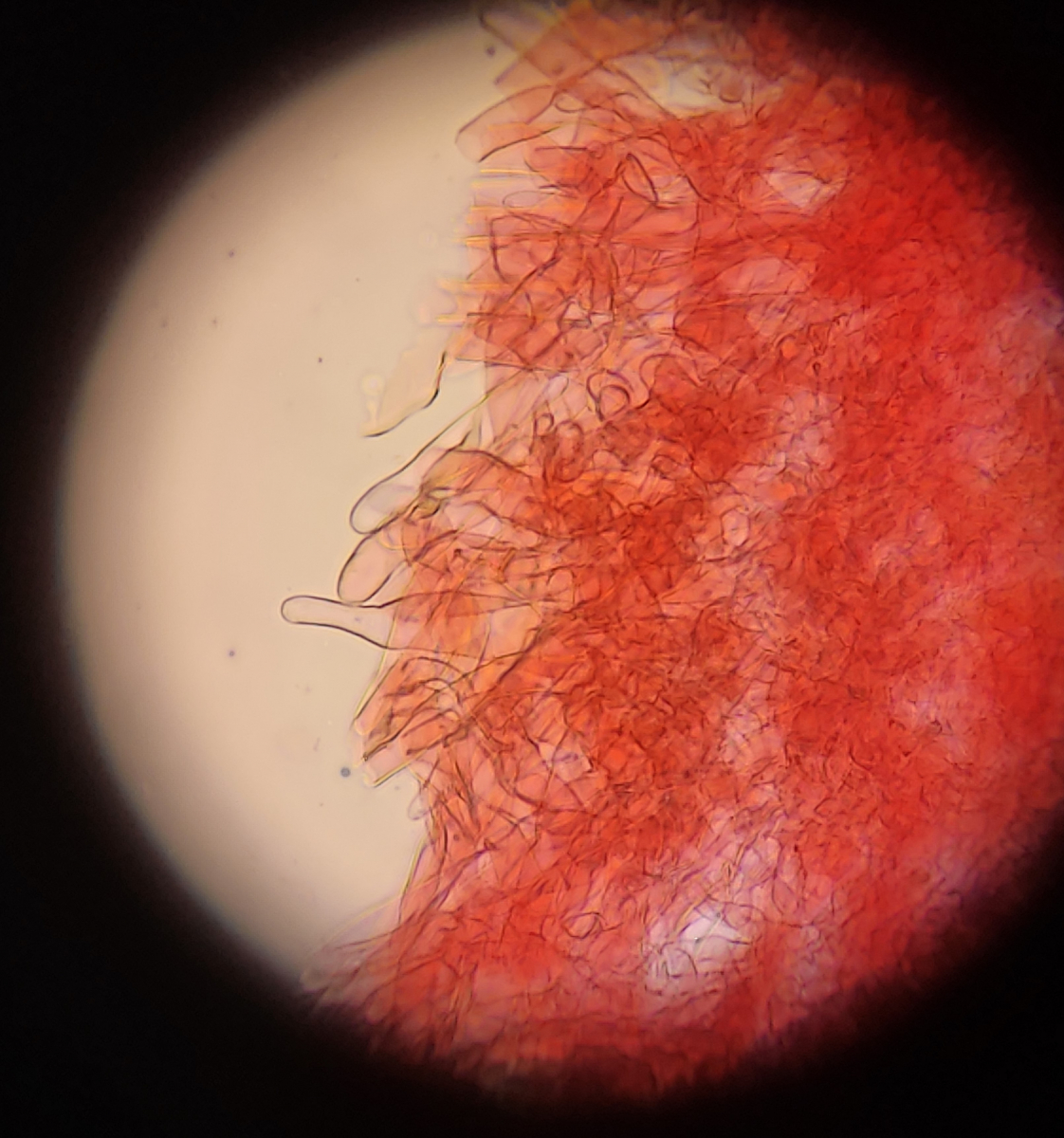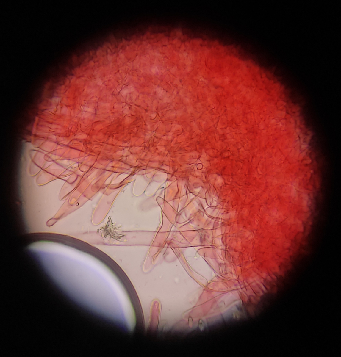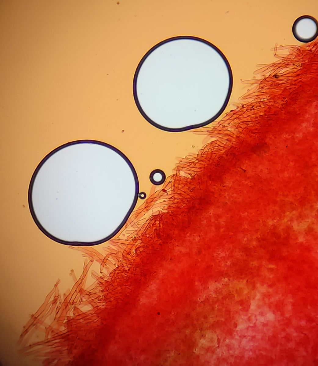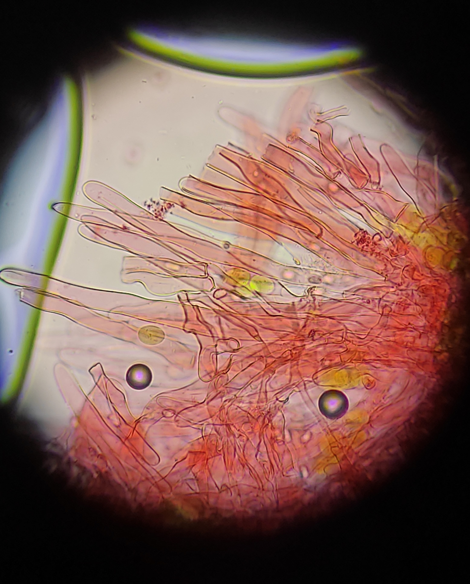 • Hi ihr beiden und vielen Dank für die Antworten! Ich glaube jetzt ist mir das schon etwas klarer. Bei einer richtigen hymenidermen Schicht müssten das demnach dichtstehende keulige/eiförmige Elemente sein und nicht solche langen Haare. :)