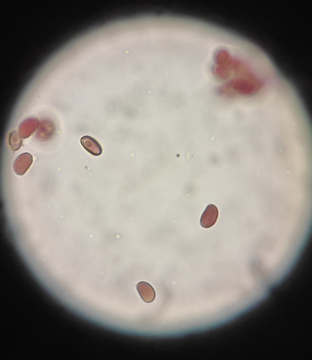 Die Sporen sind schon mal nicht gespornt oder am Apex abgestutzt. Ich würde sie als bohnenförmig-ellipsoid bezeichnen.