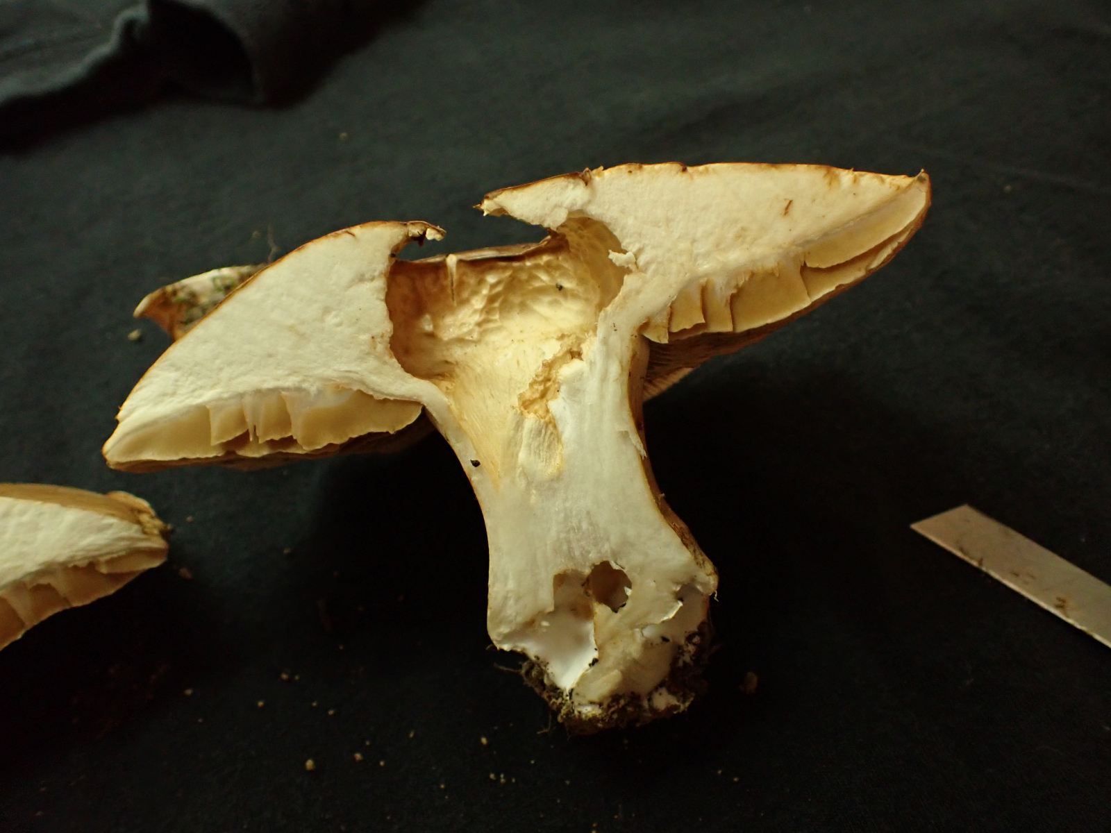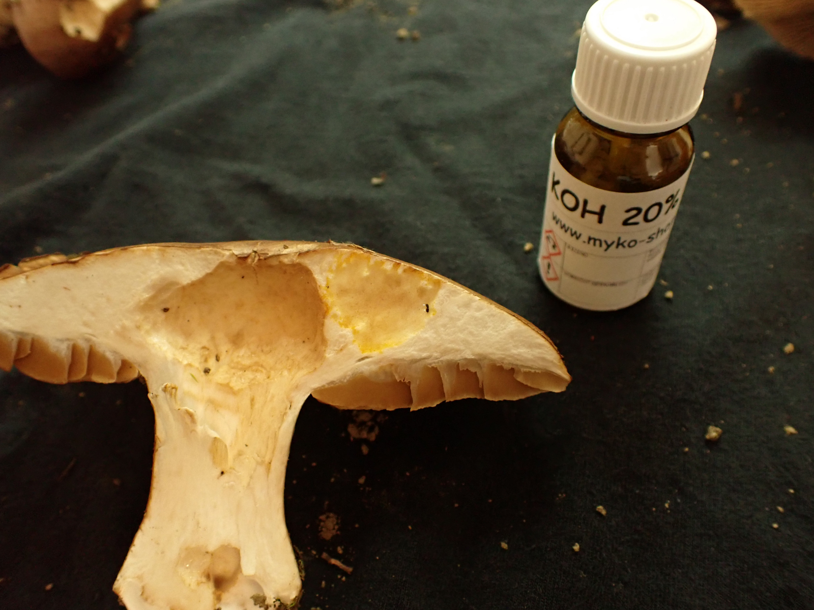 KOH Reaktion ist Negativ, Geruch nichts ungewohnlich so tipisch Cortinarius, die Lamellen sind jung Hell, das Fleich auch Weiß.
