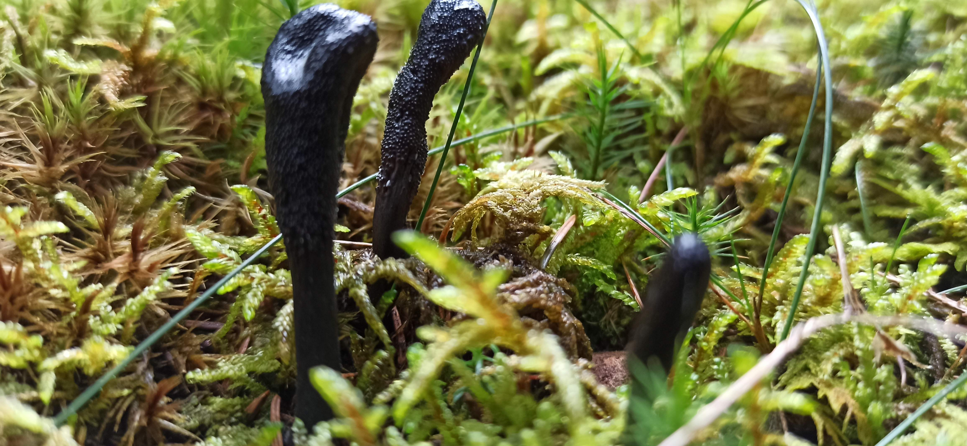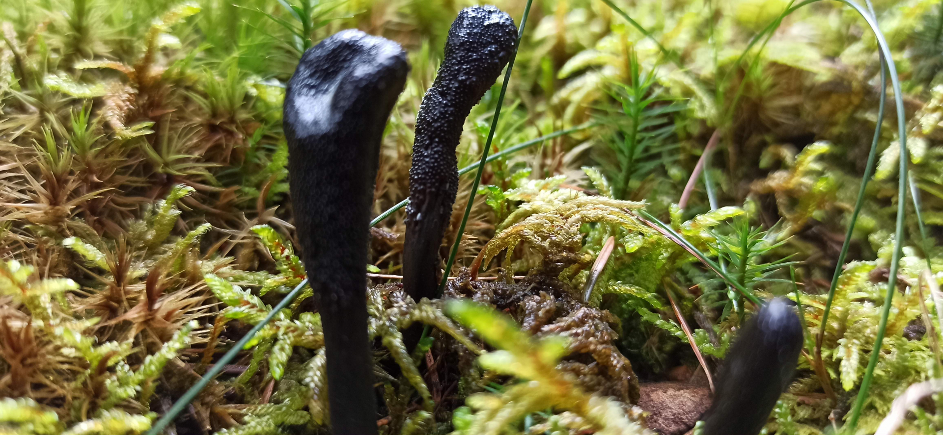 Bei der Zunge handelt es sich ziemlich sicher um die Zungenkernkeule (Tolypocladium ophioglossoides), die an Hirschtrüffeln schmarotzt.