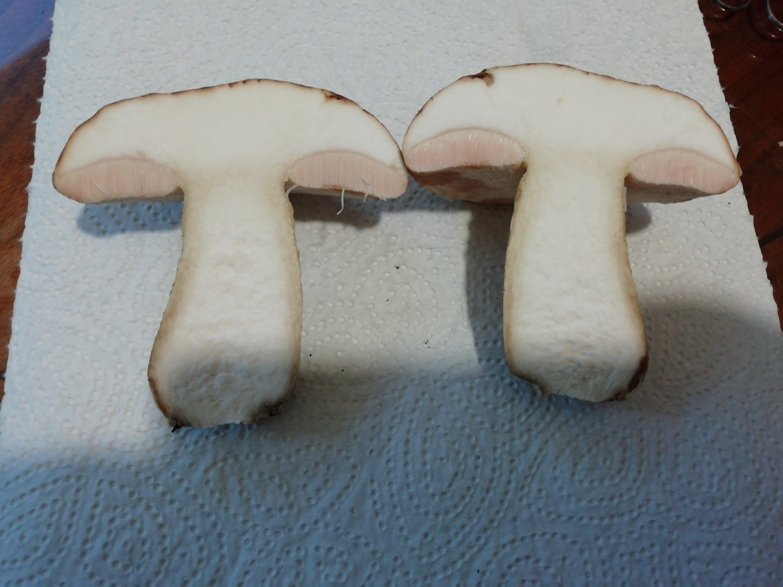 Edit: auch das dunkle Stielnetz ist kein gutes Zeichen. Probier einfach mal ein klitzekleines Stückchen (und spucks danach wieder aus), wenn es ein Galli ist solltest du das schnell merken.