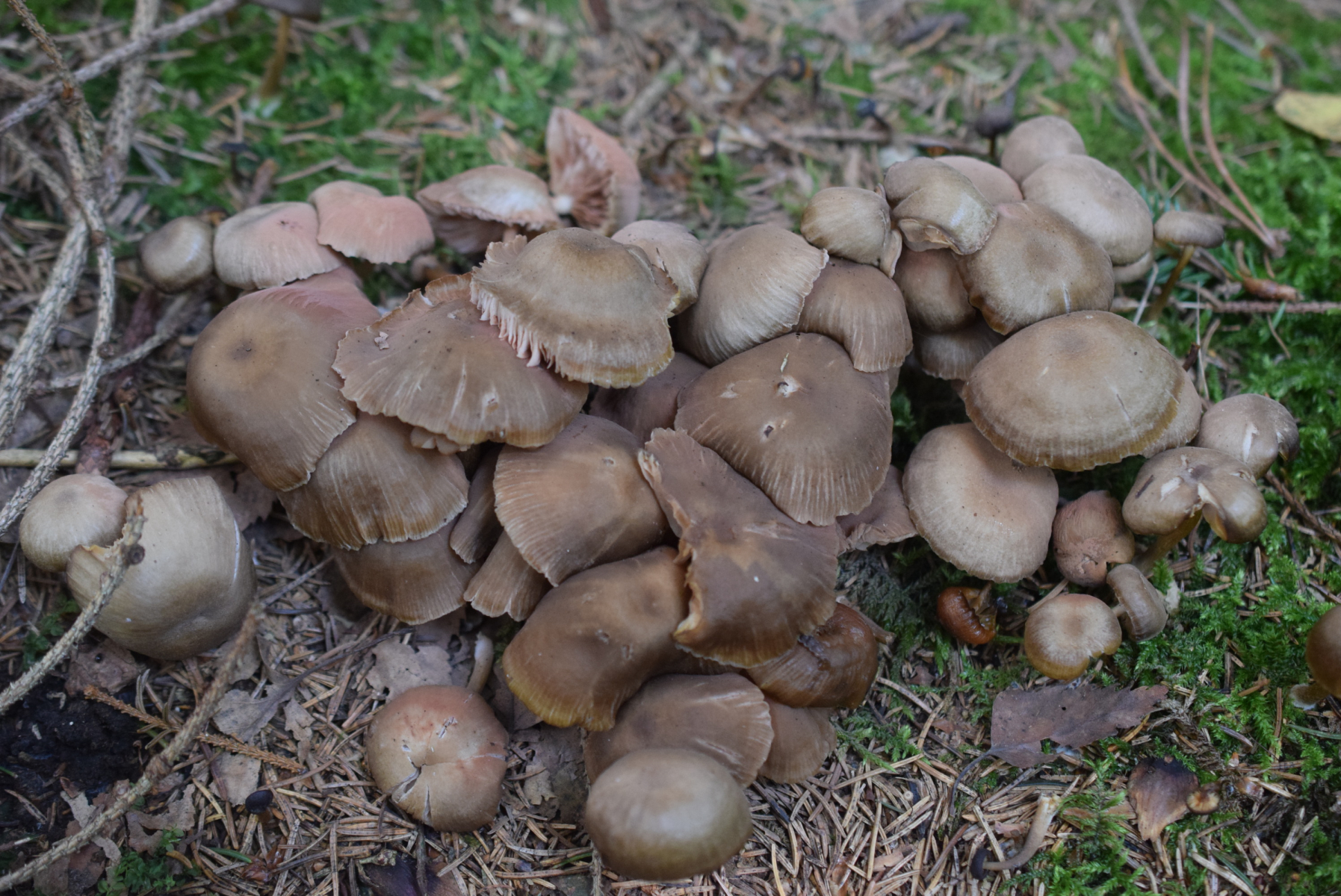 Wegen Sporenpulverfarbe - Gymnopus und Mycena kommen nicht in Frage . Auch nicht Cortinarius .oder Inocybe
