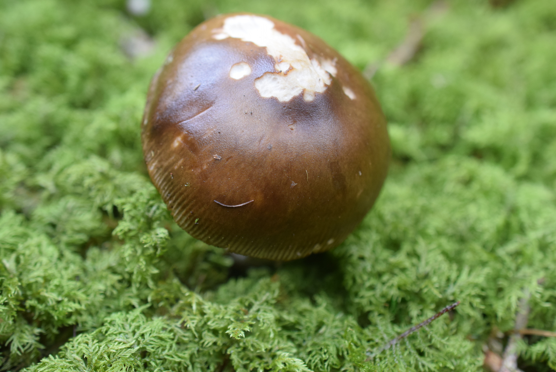 Etwas weiter ein erwachsene Fruchtkörper Amanita sp , an dichte Bemooste Boden gefunden
