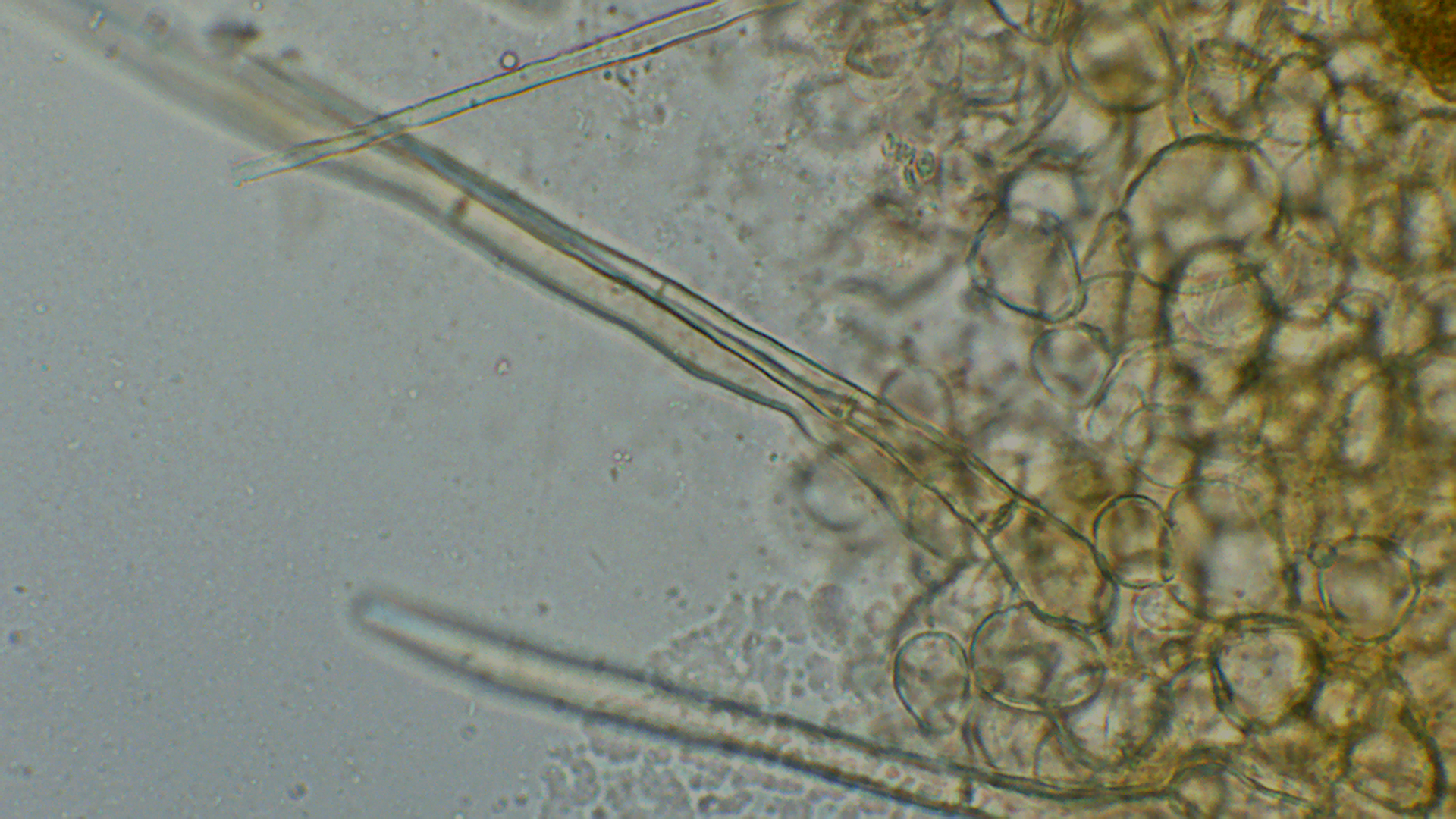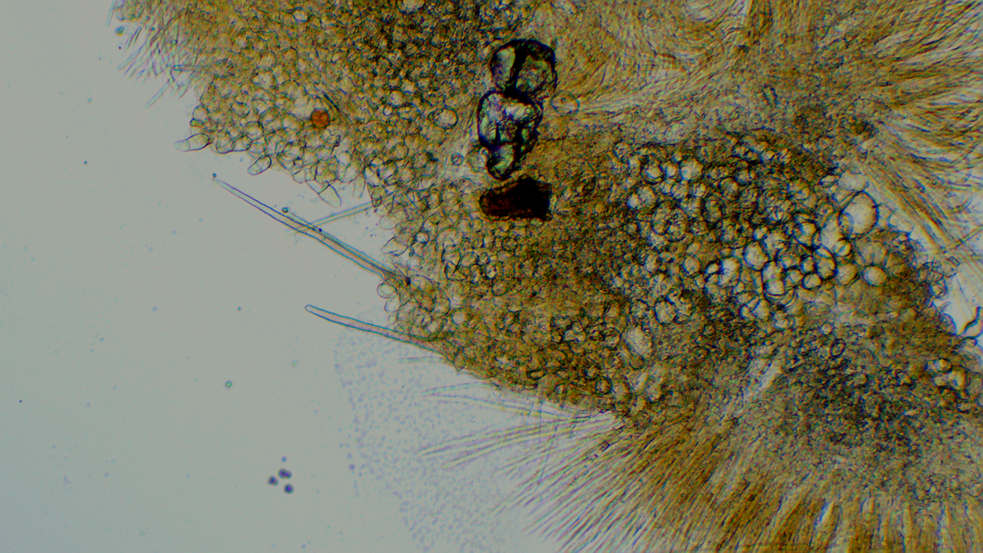Nunja, ich hätte die Fruchtkörper nun gar nicht hier eingestellt, aber ich fand die Haarbasis sehr charakteristisch: sie war nie verzweigt, sondern stets abgerundet.