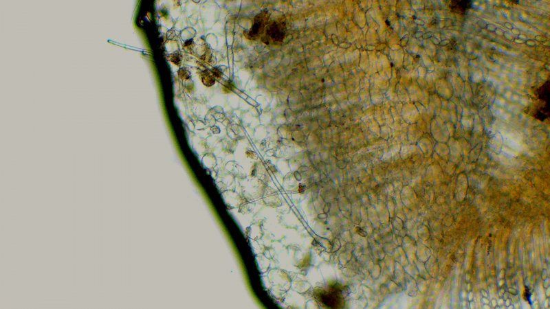 Neben den feingestreiften Sporen sind auch die unscheinbaren, aber gut entwickelten Haare typisch.