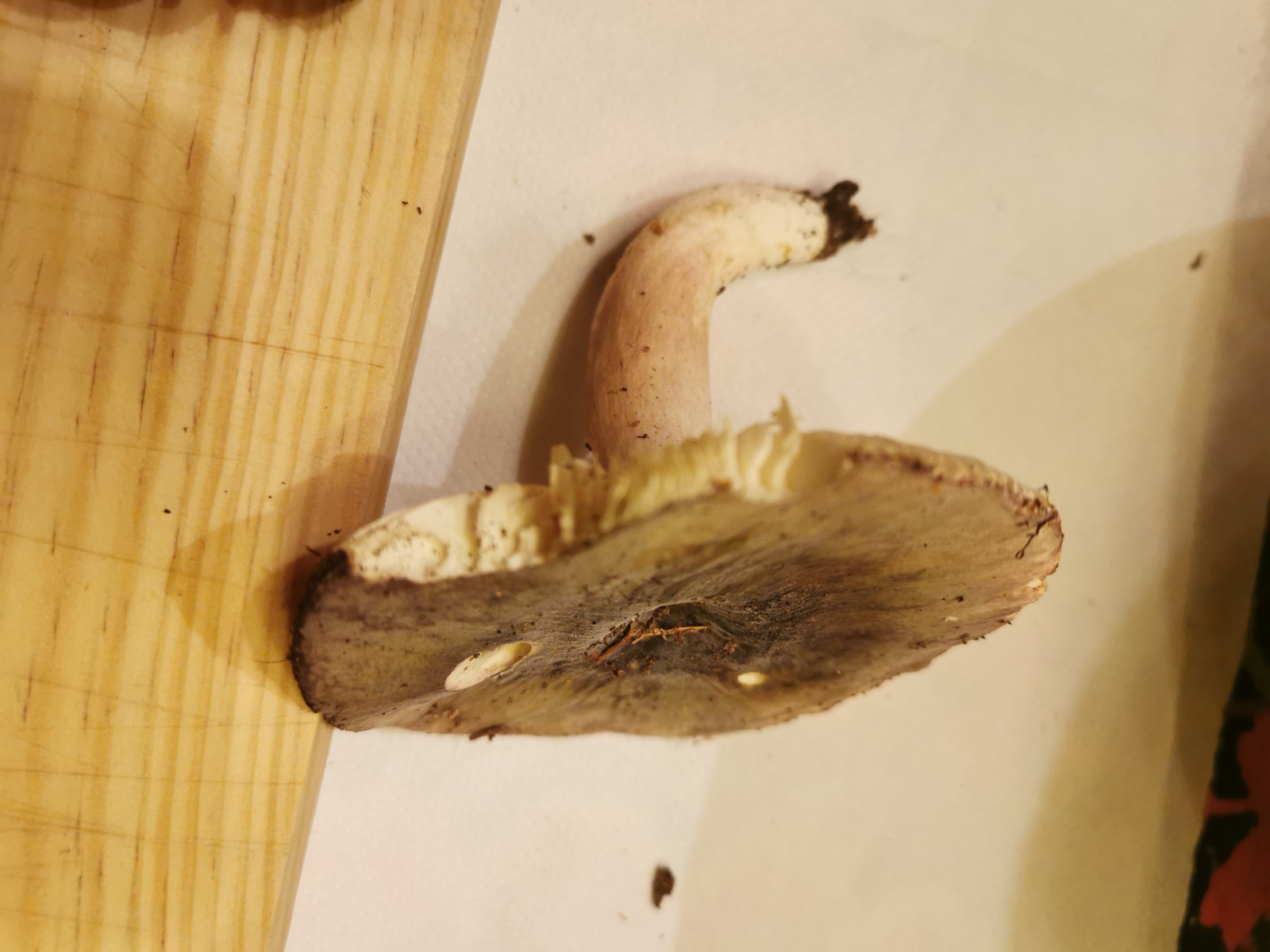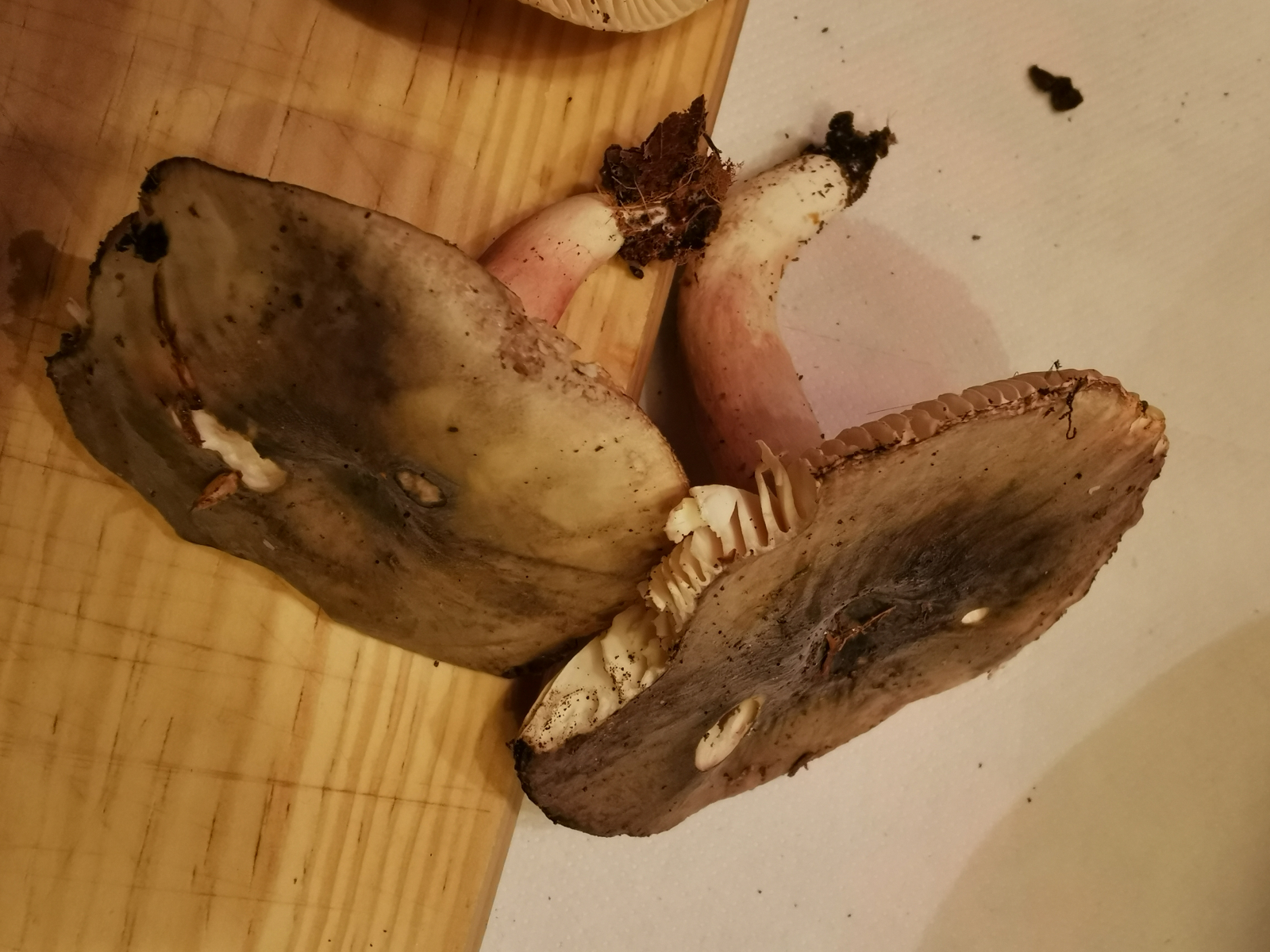 Der Stiel ist rosa angefärbt und die Lamellen splittern nicht. Er ist auch nicht scharf bei der Geschmacksprobe.