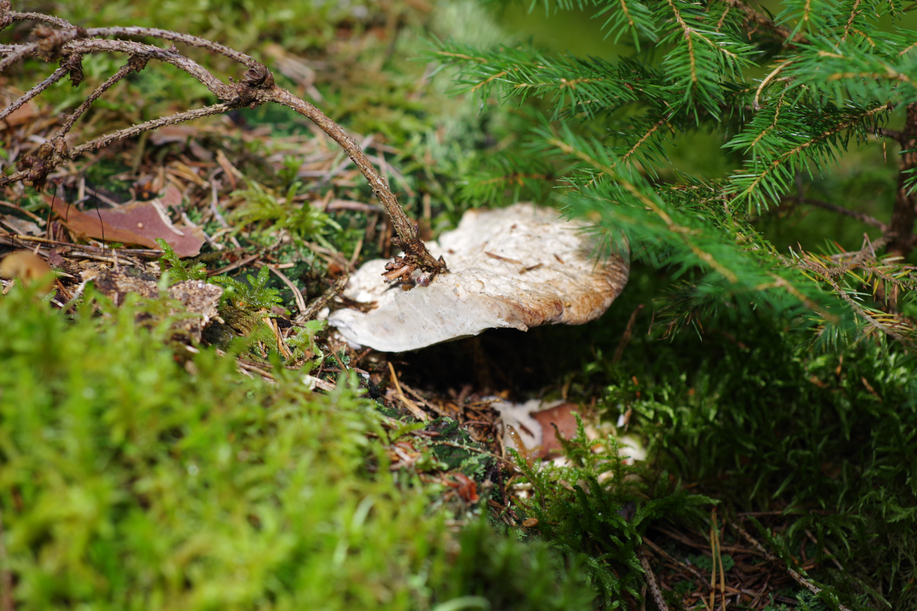 aus einem krautfreien, bemoosten Nadelwald auf Sand stammt dieser Fund. Der Stubben ist finalmorsch, kann ich nicht mehr identifizieren. Da dort aber noch zwei Kiefern der Altersklasse 150+ und einige jüngere identifizierbare Stubben vorhanden sind, nehme ich Kiefer an. Konsolenförmig, 8-10 cm breit, recht schwer und feucht, Porenschicht farblich nicht abgesetzt und nur bis 2 mm dick. Poren sehr klein 4-5 je mm. Geruch erinnert an F. pinicola. Keine bittere Komponente im Geschmack, zähes Fleisch aber gut zu schneiden. Keine Reaktion auf KOH. Auf Druck verfärben die Poren leicht grau und die Poren verschwinden. Die Zuwachskante bei einem Pilz war abgerundet und leicht grau, bei dem anderen (wohl nicht im Wachstum) spitz und ohne Graufärbung.