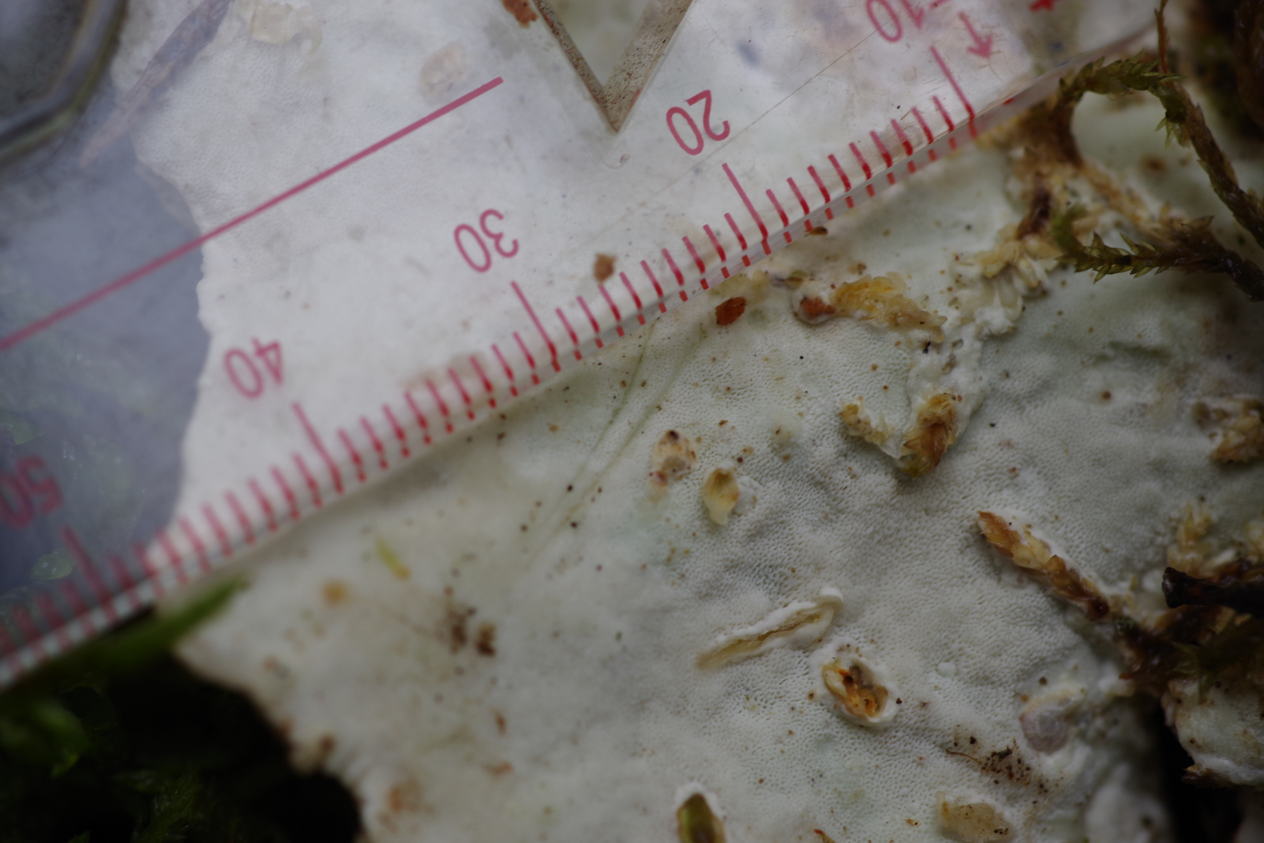 So richtig finde ich keinen Arbeitstitel, aber von allem was ich durchgeschaut habe, sieht mir Postia guttulatus noch am wenigsten nicht passend aus.