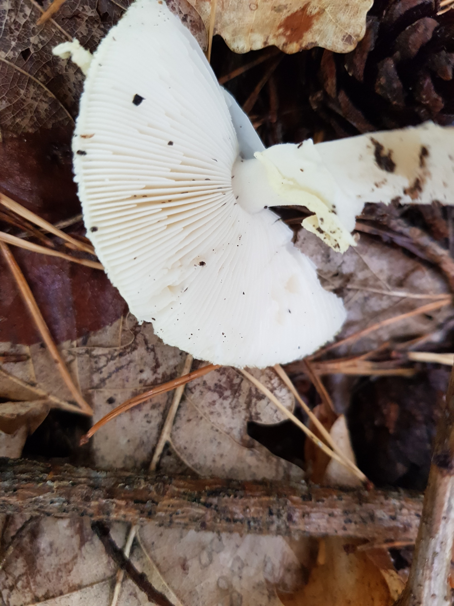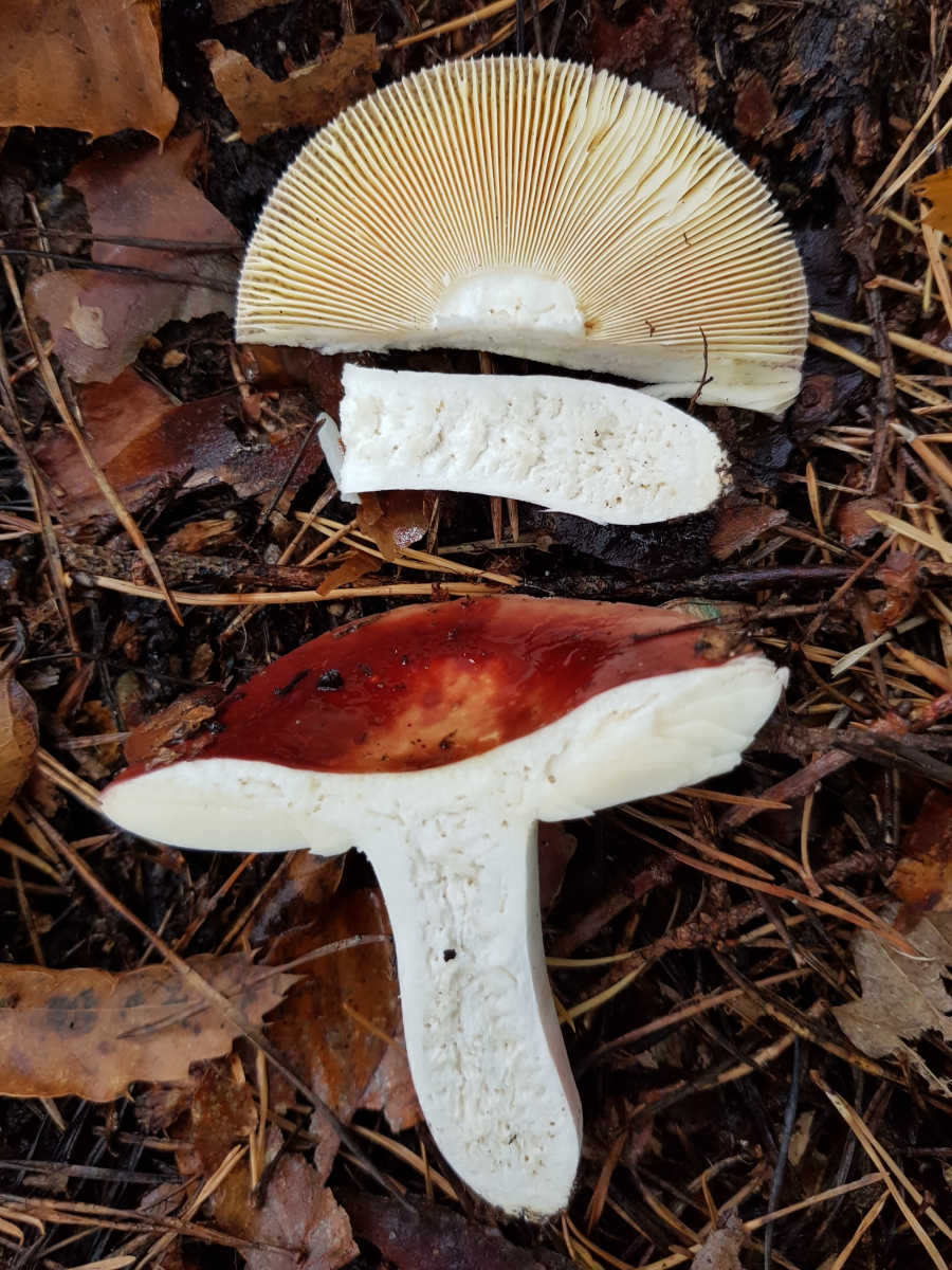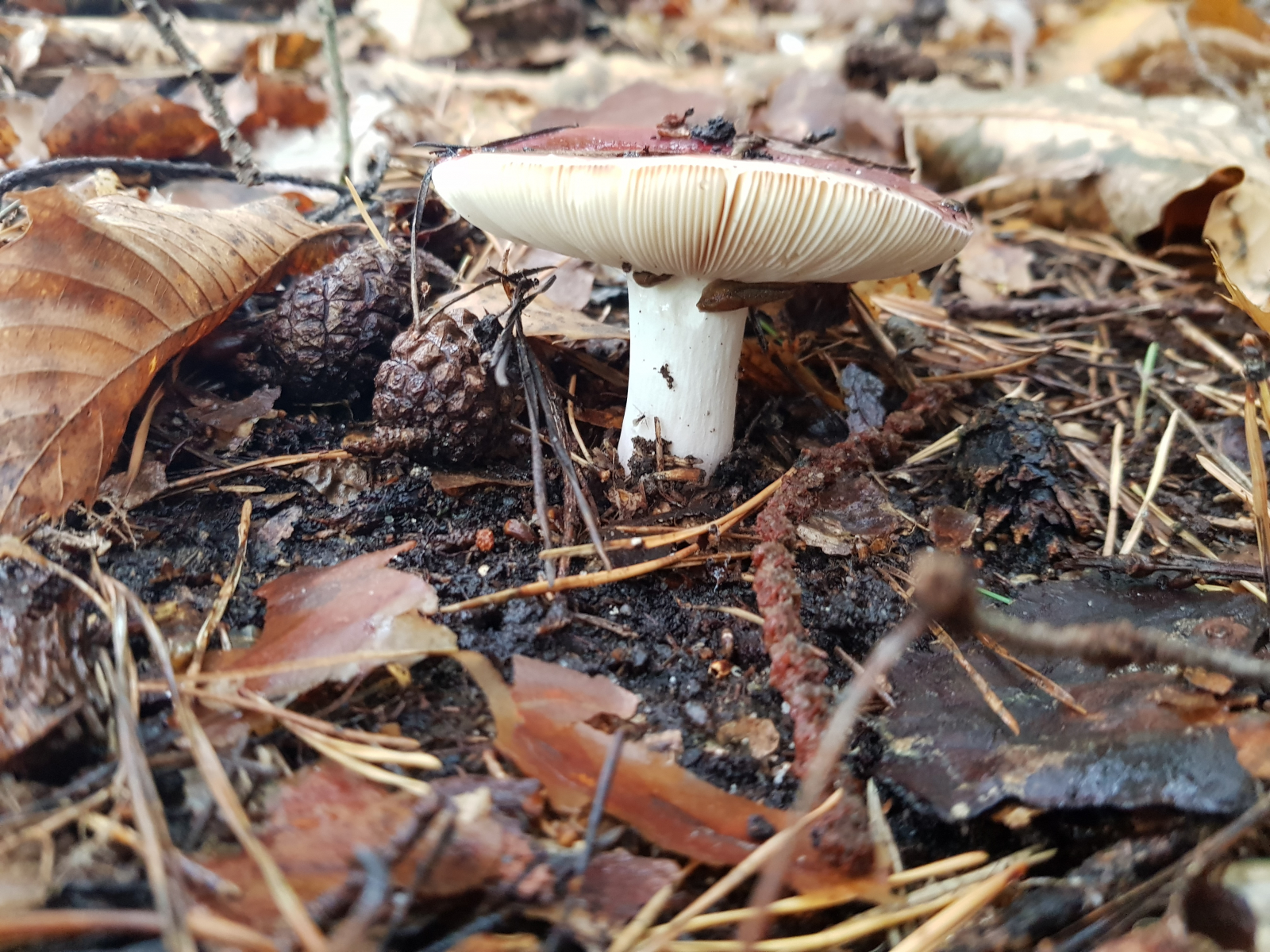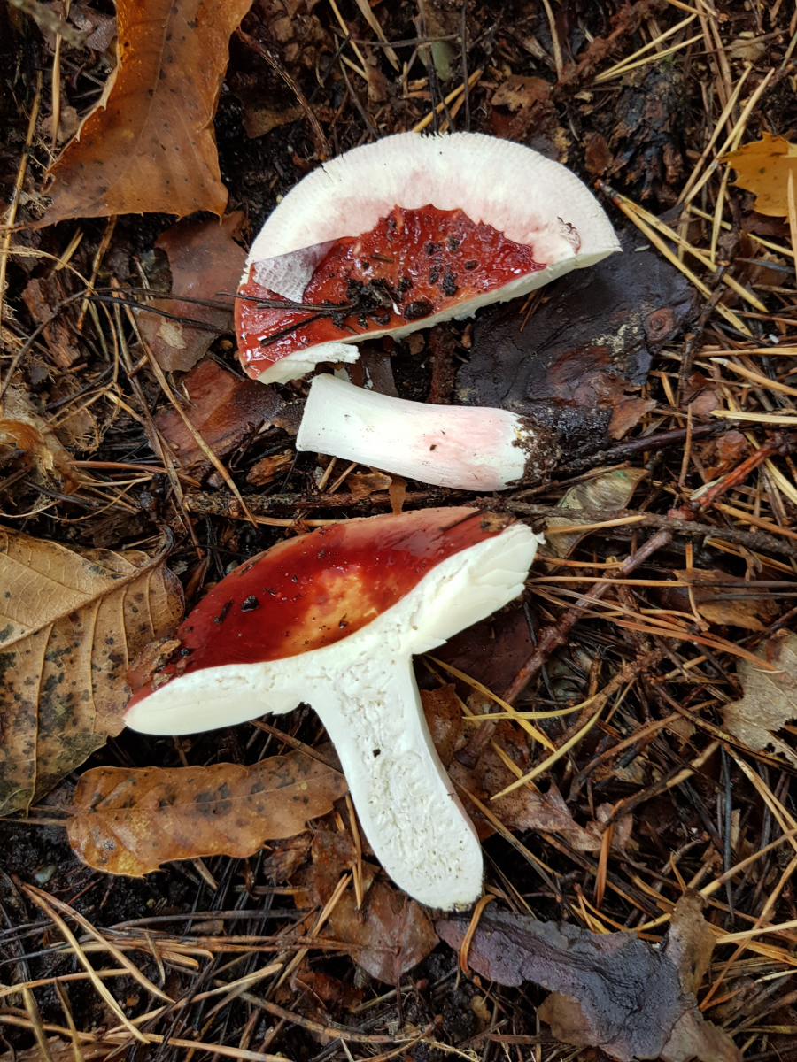 2.) Da ich mich nicht traue, im Wald einen Pilz zu schmecken und ich keinen Pilz mitgenommen habe, fehlen mir die Eigenschaften: Geschmack und SPP. Ich habe keinen Milchsaft entdeckt, d.h. für mich im Moment: Täubling