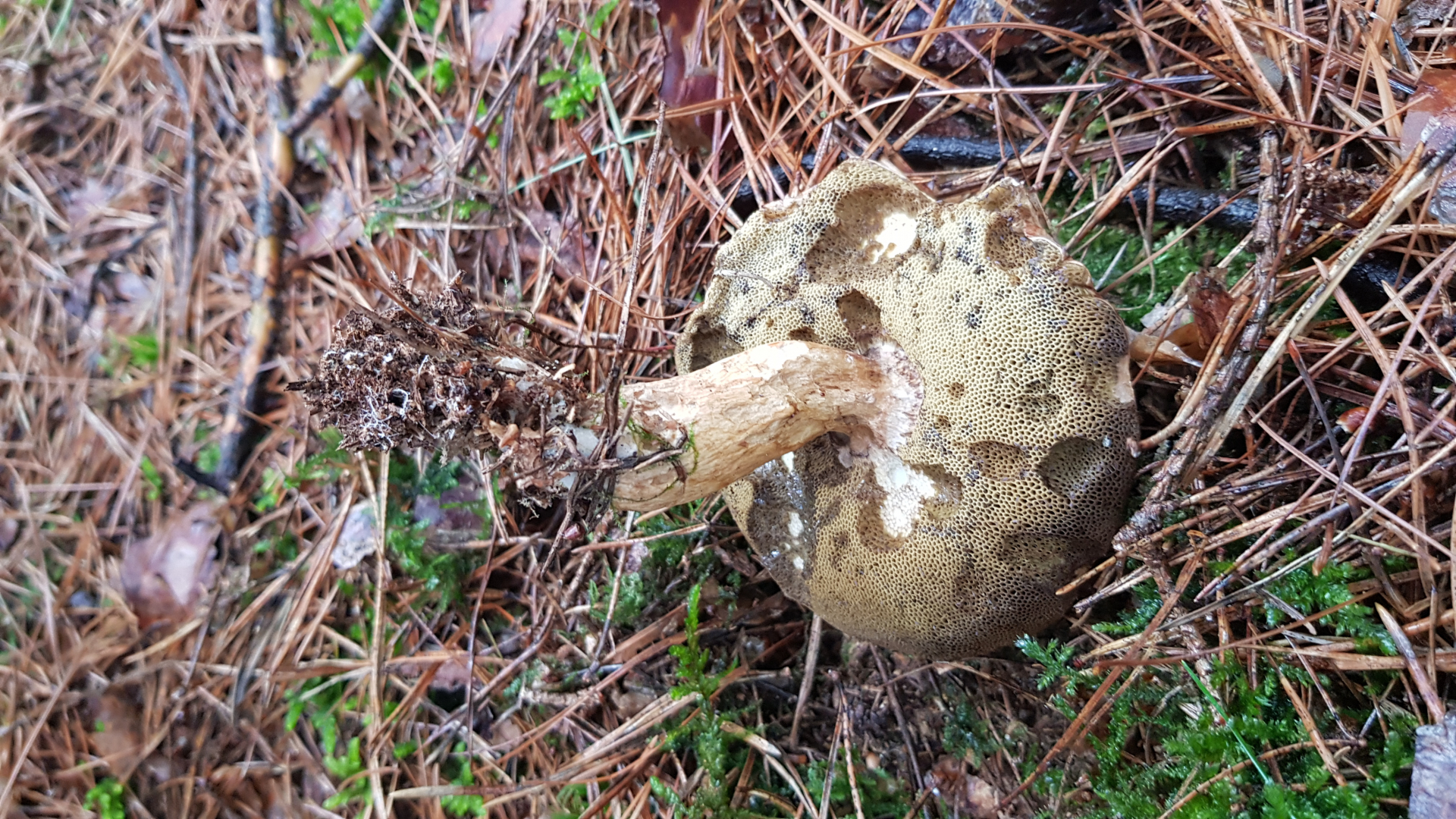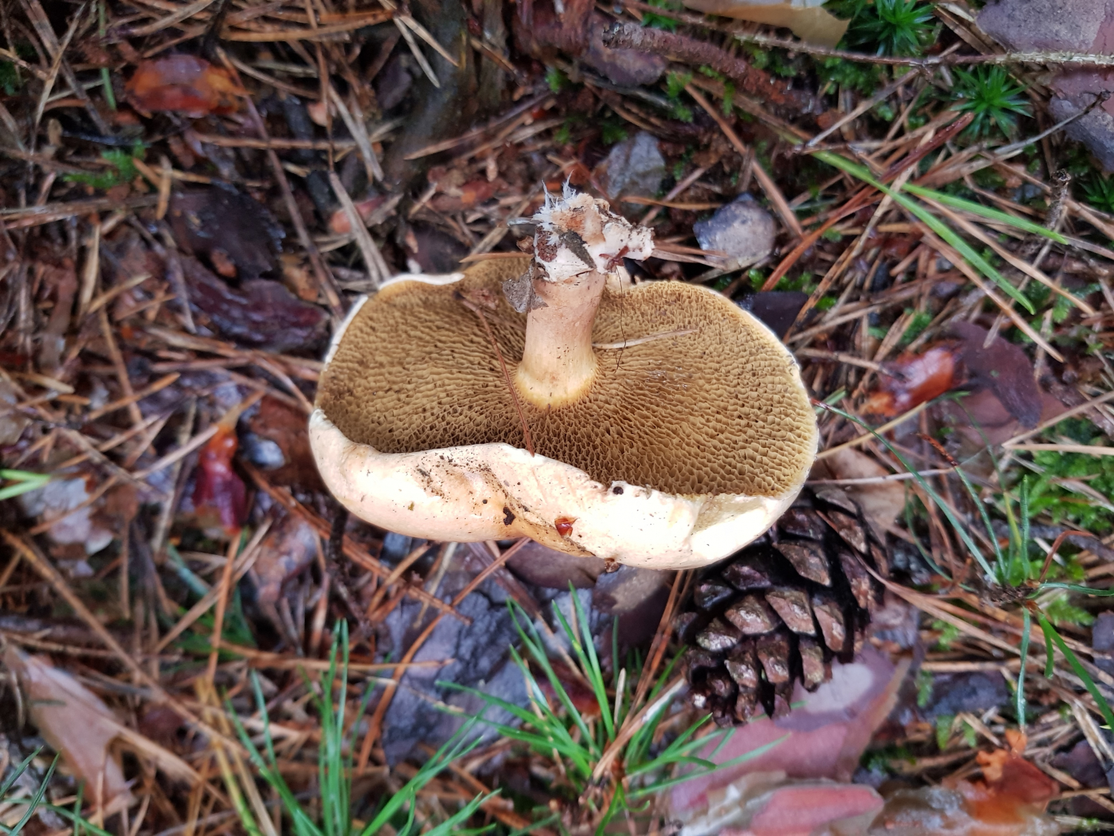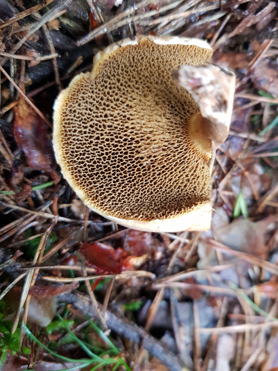 Röhren/Poren olivbraun, eckig, beim Stiel lang gezogen