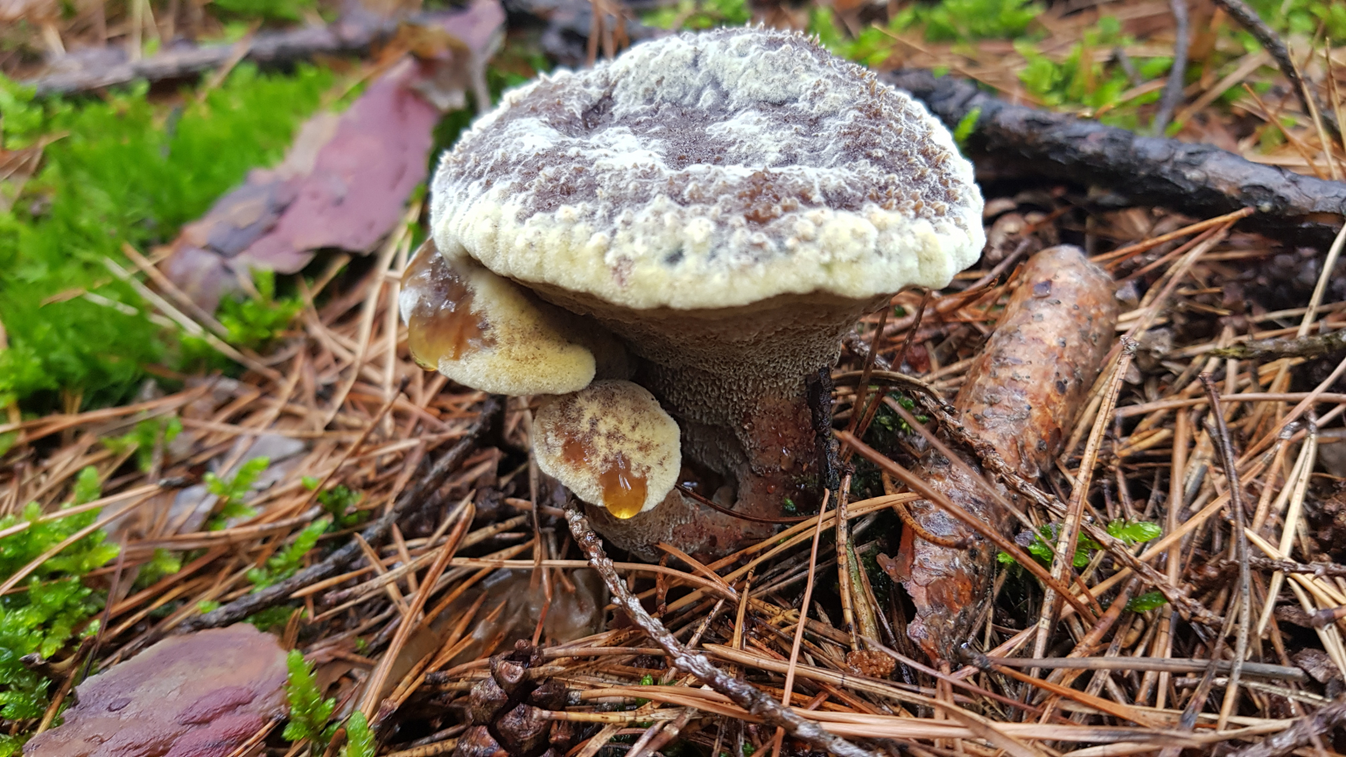 9.) Ist das einfach nur ein alter verschimmelter Pilz? Er hat links Anhängsel mit Guttationstropfen.