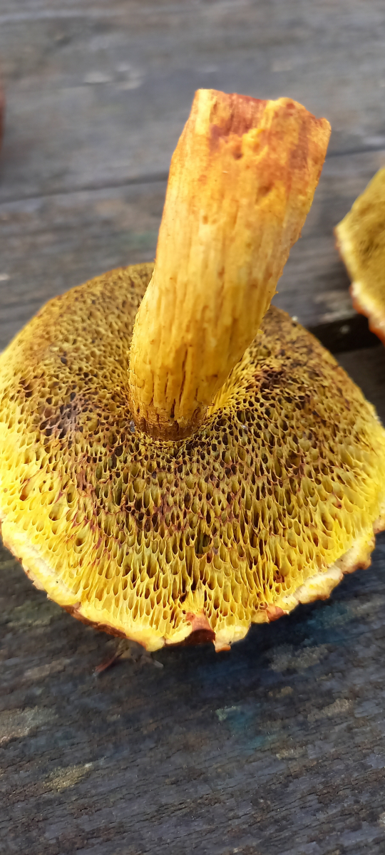 Hier wurden dann auch ein netzstieliger Hexenröhrling und mehrere Semmelstoppelpilze gefunden.