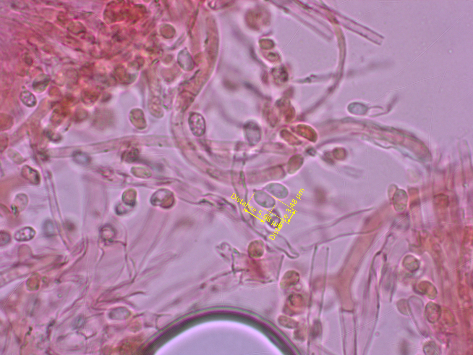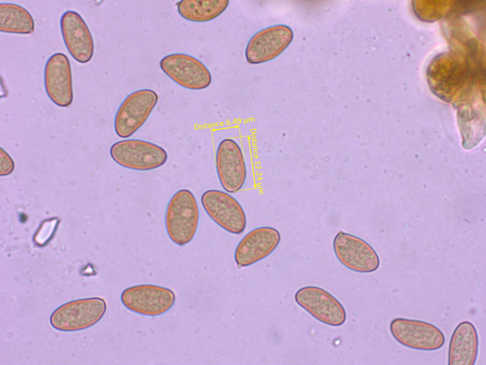 Sporen recht gross und schlank: 12.1-12.6-13.5 x 6.0-6.7-7.6 µm, Q = 1.66-1.88-2.07