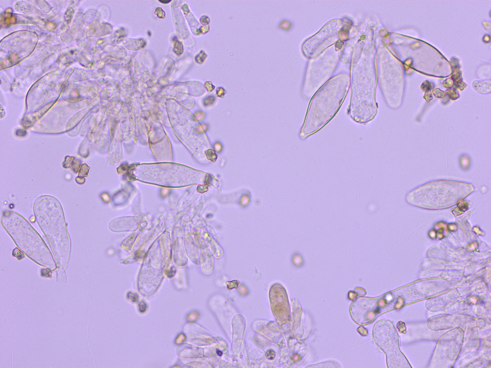 Cheilozystiden nur selten mit Kristallen, 45-65 x 14-18 µm
