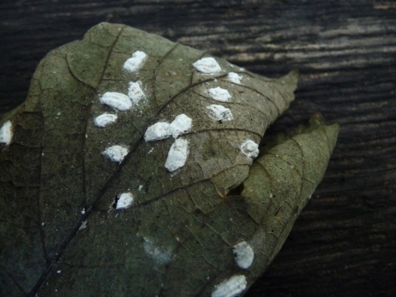 Zu Nr. 3: Ich füge noch ein Foto ein. Vielleicht erleichtert das die Bestimmung. Eine Aussage, zu welcher Baumart der gefällte Stamm gehört, wäre jetzt Spekulation.Zu Nr. 4: Ich tendiere hier zu Uncinula tulasnei, der auf Bergahornblättern zu finden ist. bei dem ich allerdings an ein mehr flächiges als punktuelles Auftreten dachte.