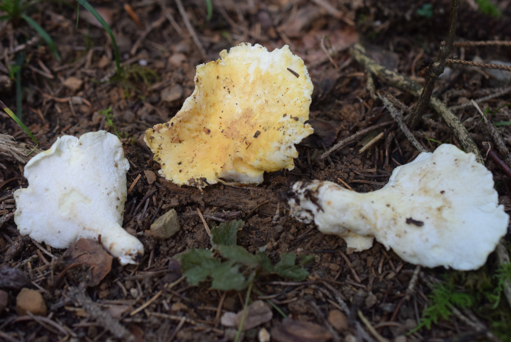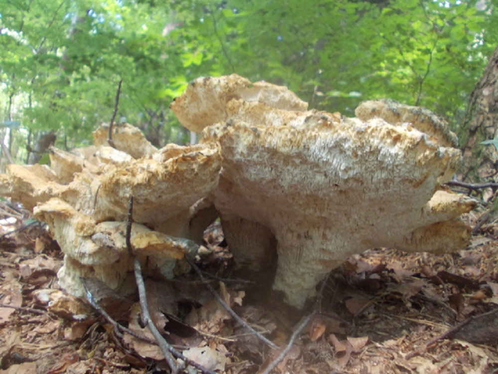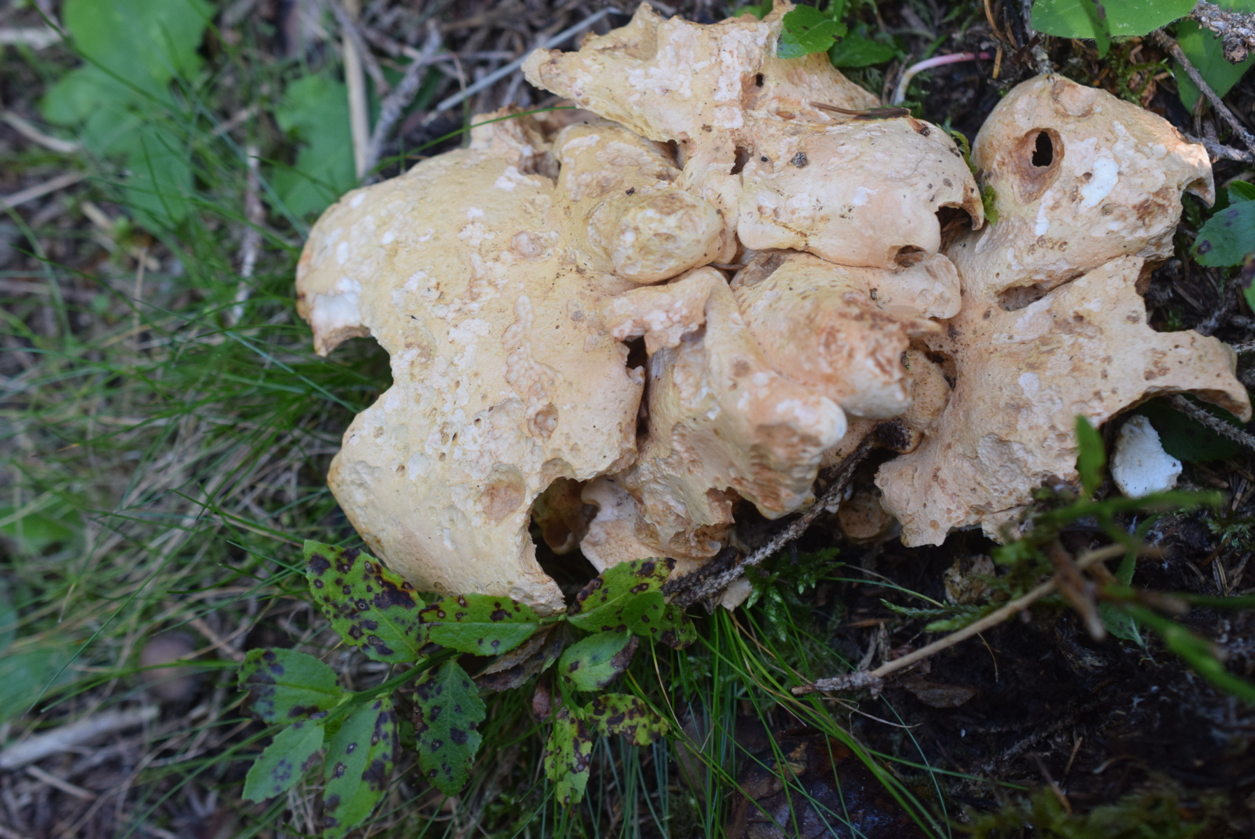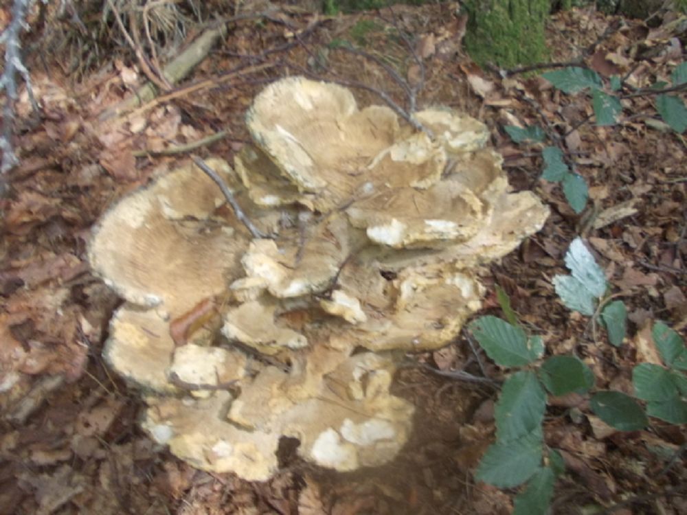 In einem Fichten-Birkenwald auf dem Antarsberget (Vaesternorrland, Schweden) fand ich heute etliche Porlinge, teilweise zu mehreren zusammengewachsen, mit unregelmäßig ausgebeulten Hüten bis 30 cm Durchmesser.