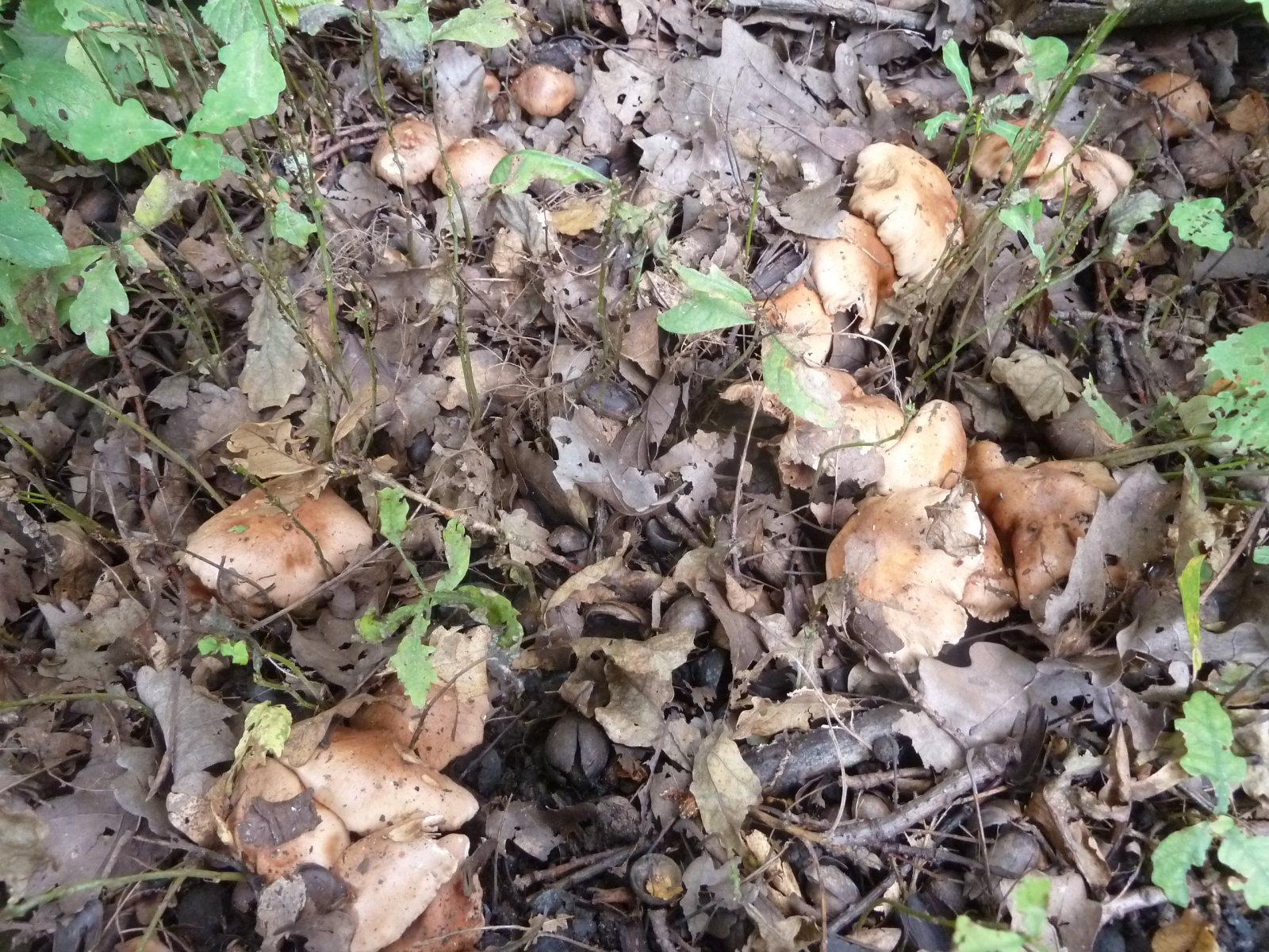 heute habe ich dieses Büschel im Eichen-Buchen-Mischwald (Lehmboden auf Buntsandstein) gefunden und stehe völlig auf dem Schlauch. Geruch schwach pilzig, nicht unangenehm, Geschmack habe ich nicht geprüft. Für Hebeloma sind die Lamellen wahrscheinlich zu dunkel, was besseres fällt mit gerade nicht ein.