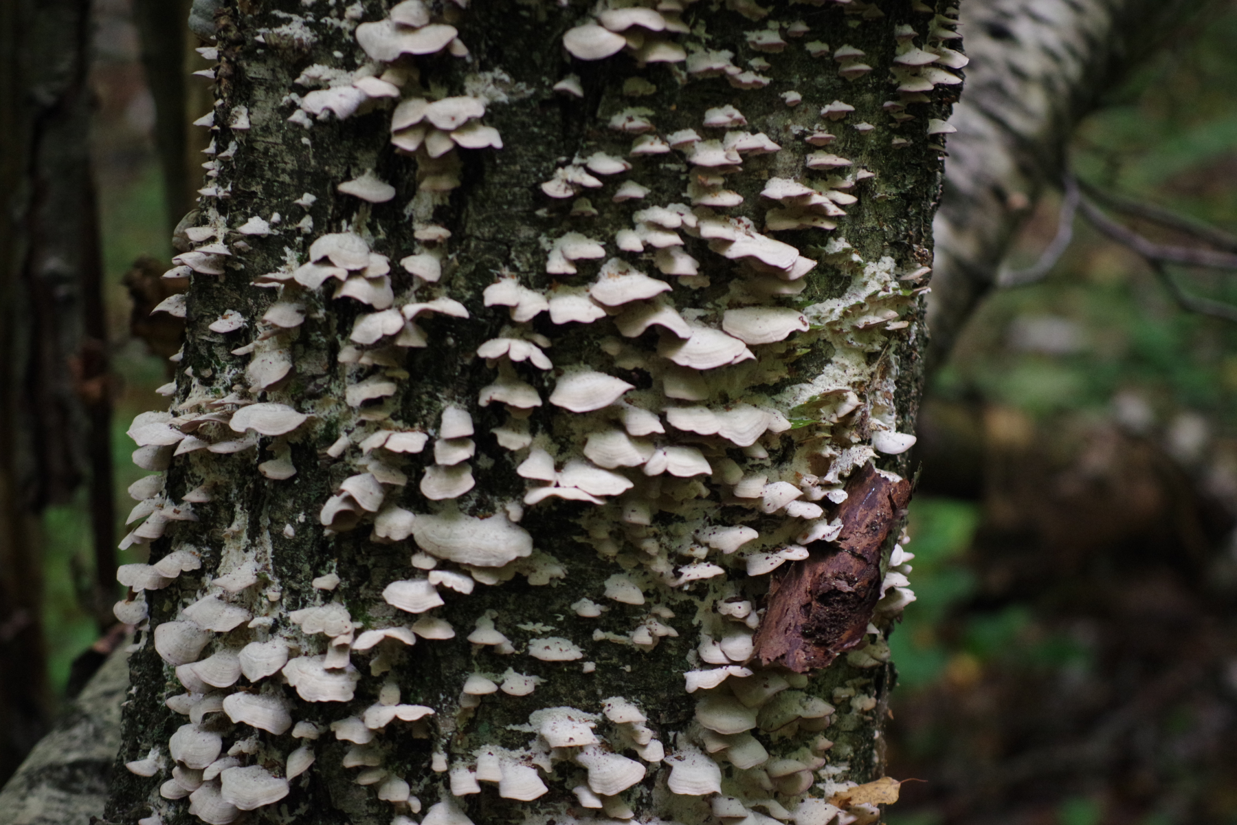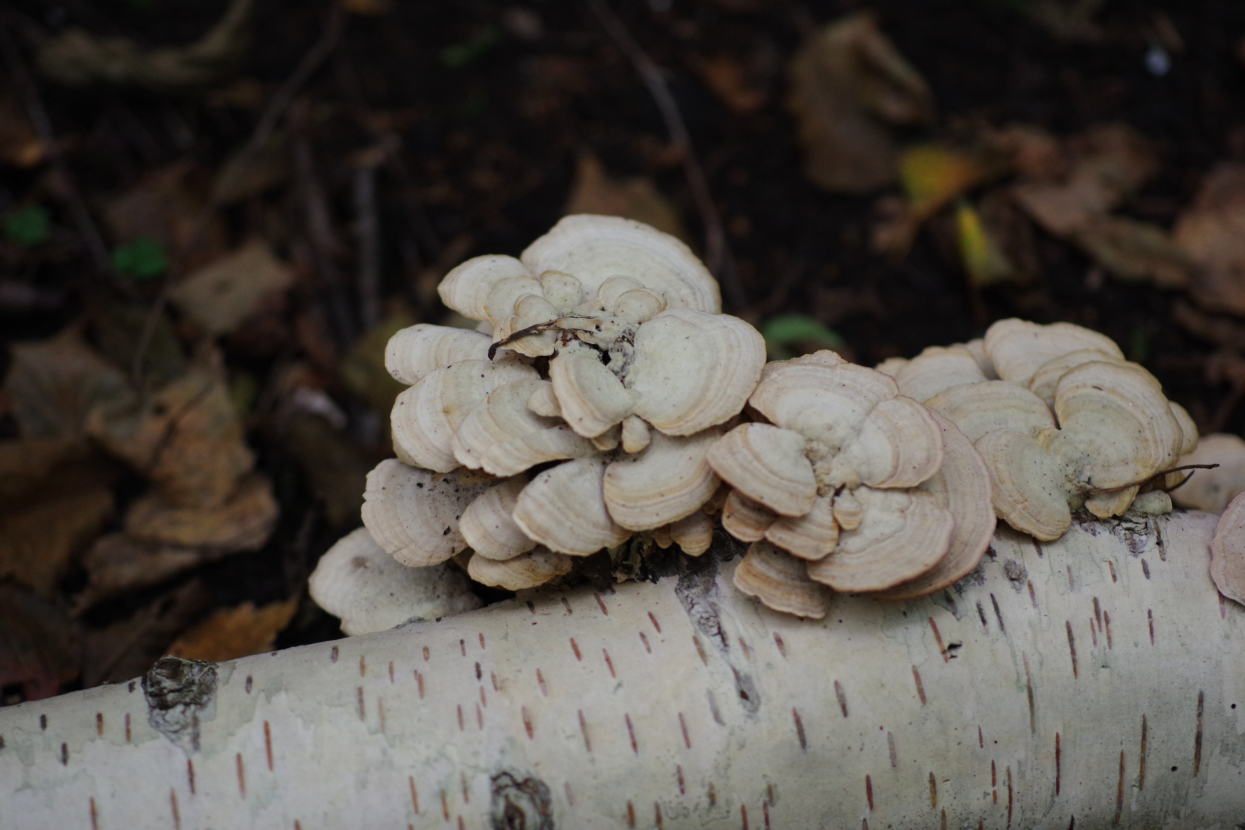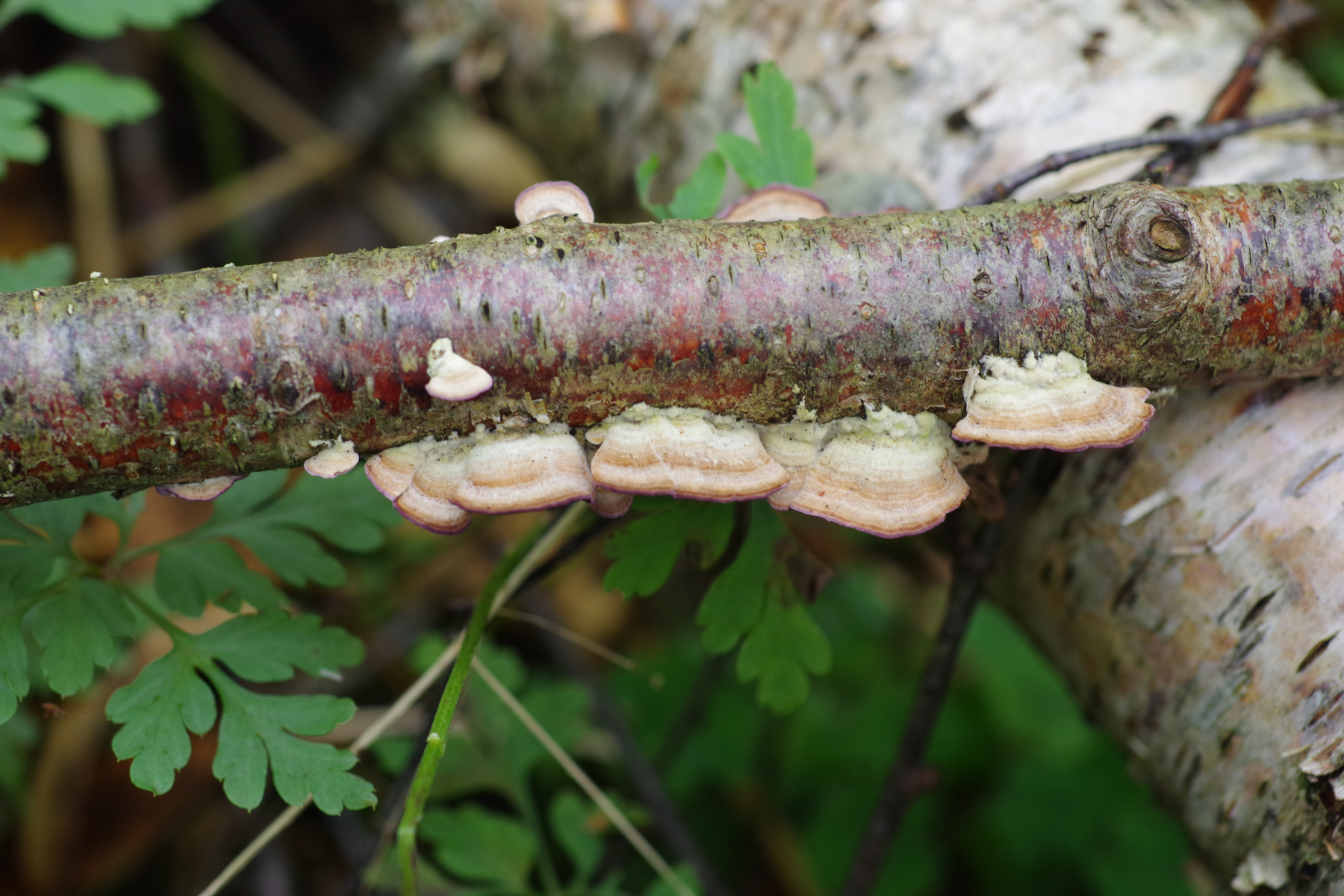 Kleinere Fruchtkörper an Birkenzweig